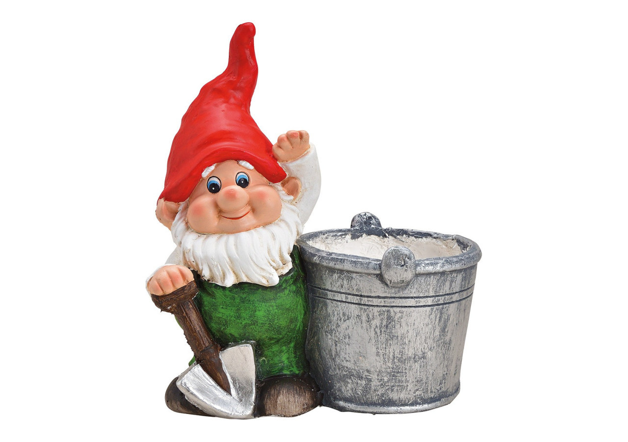 Ajoutez une touche ludique à votre jardin avec notre nain de jardin en magnesia. Accompagné d'un pot de fleurs, il apporte charme et couleur. Dimensions : 31 x 33 x 19 cm.
