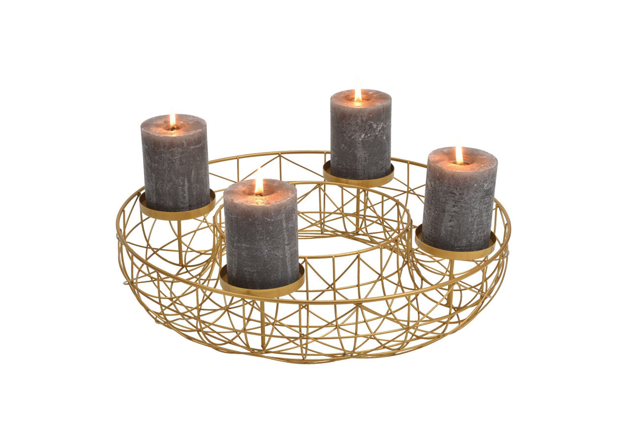 Ajoutez une touche élégante à votre décoration festive avec cette couronne de l'Avent en métal doré. Ses dimensions de 40x8x40cm en font un accessoire parfait pour embellir votre table ou votre cheminée. Son design raffiné et sa couleur dorée apporteront chaleur et luminosité à votre intérieur pendant les fêtes.