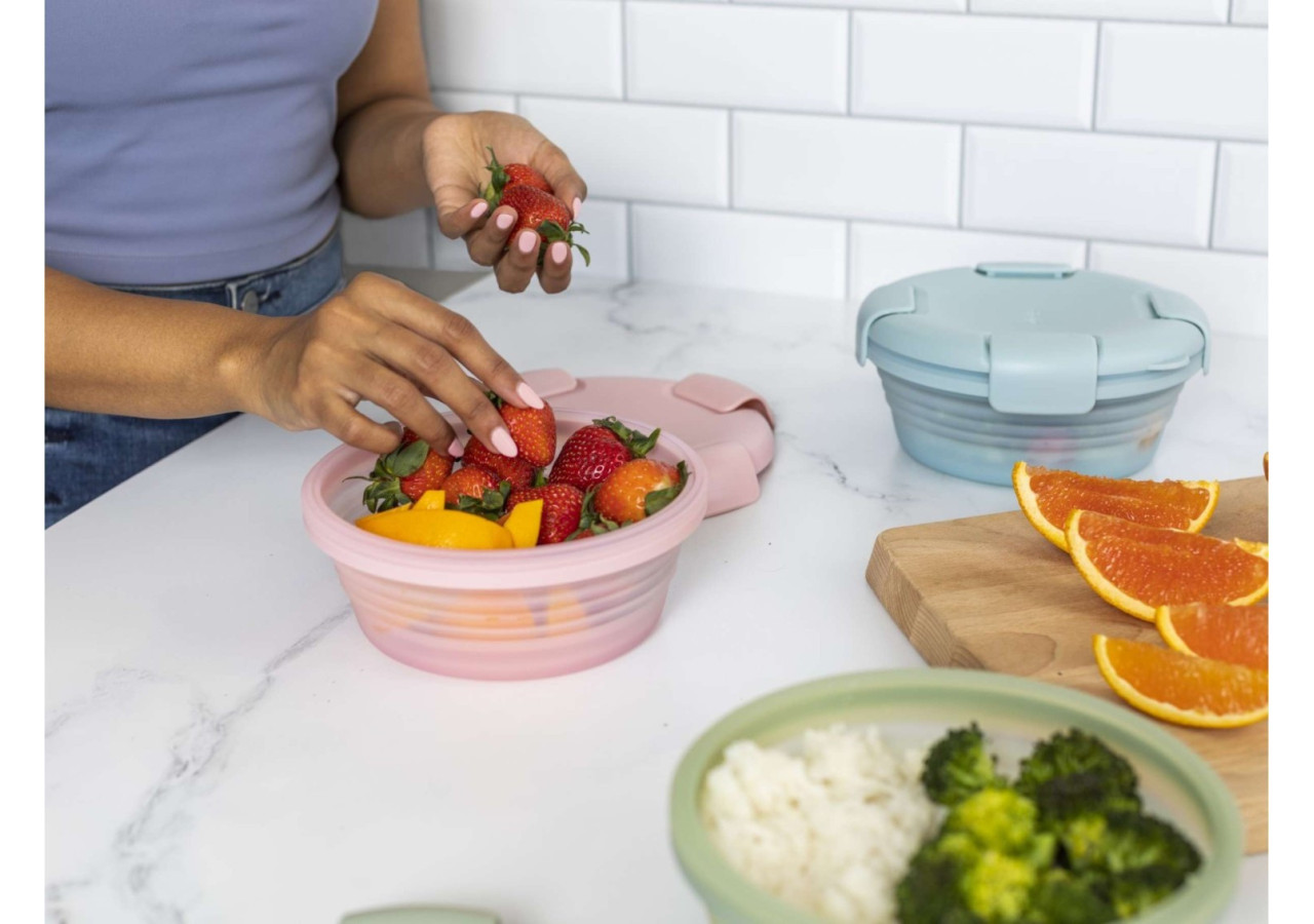 Le bol pliable avec couvercle de 1065 ml est l'ustensile idéal pour conserver vos restes ou emporter votre déjeuner. Fabriqué en silicone léger et en plastique recyclé, ce bol est à la fois étanche et résistant à la chaleur. Conçu pour être facile à nettoyer au lave-vaisselle, il se plie pour un rangement pratique. Idéal pour les salades, soupes ou sandwiches, il vous accompagnera partout avec style.