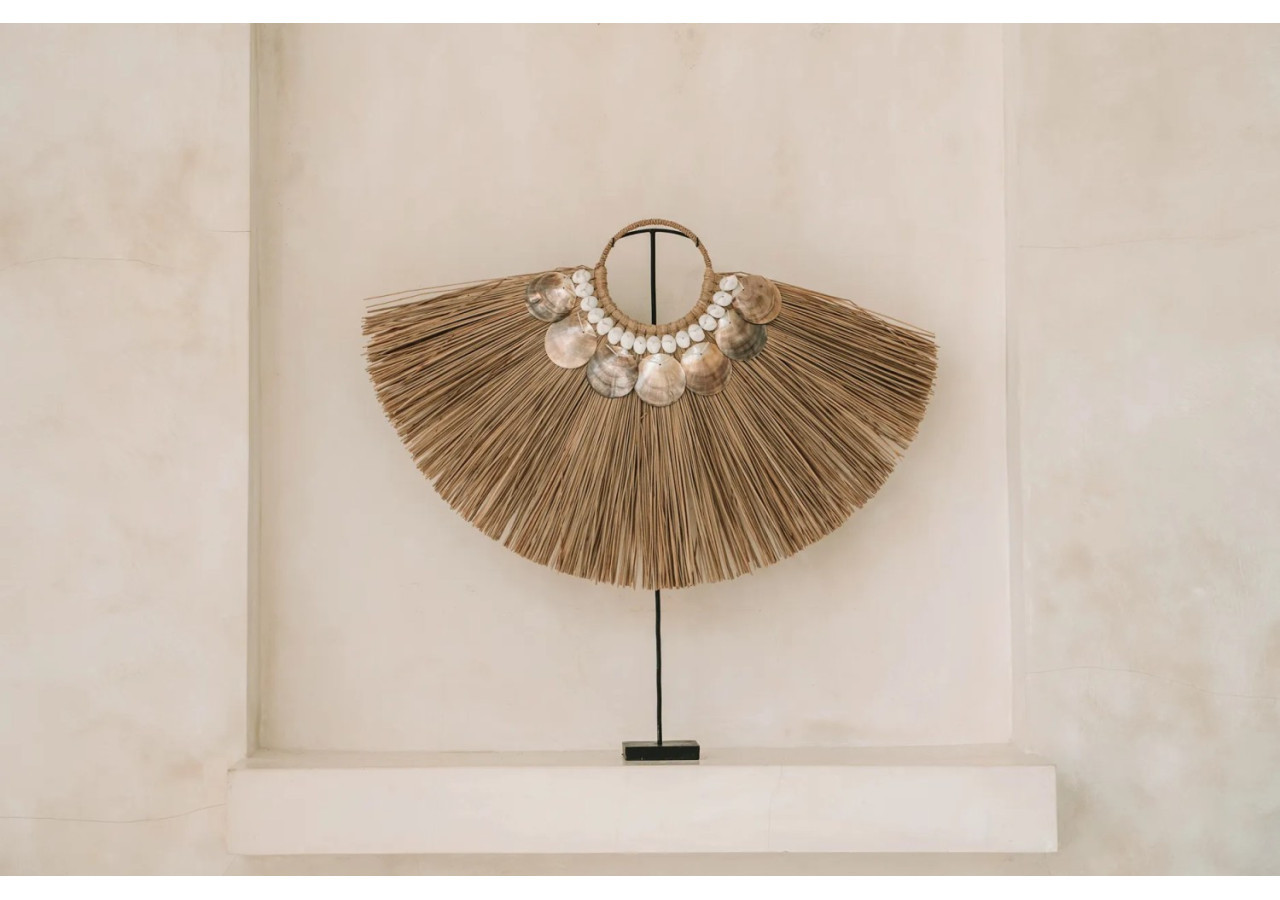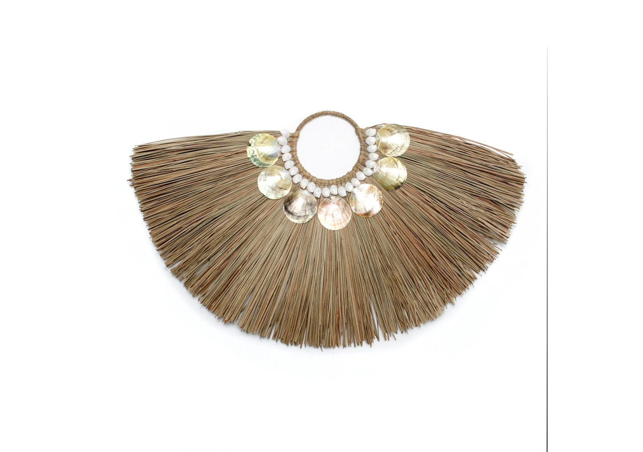 Embellissez votre intérieur avec notre affichage en herbe Alang. Cette pièce bohème est ornée de coquillages artisanaux, parfaite pour décorer votre salon, votre terrasse ou votre jardin.