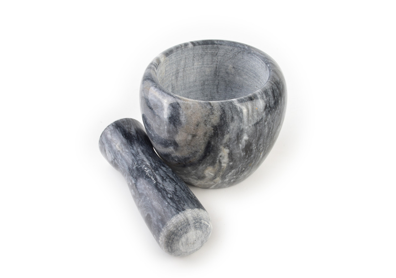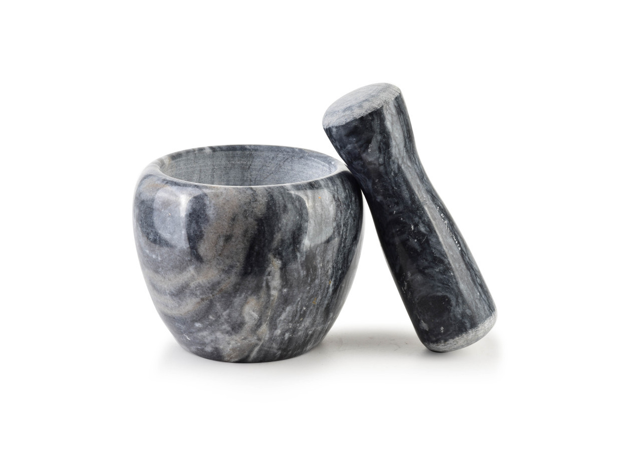Ce mortier en pierre de la collection Modern Kitchen est l'alliance parfaite entre fonctionnalité et élégance. Réalisé en pierre naturelle aux teintes profondes de noir et de gris avec de délicats motifs marbrés, il ne se limite pas à être un simple outil de cuisine, mais devient également un élément décoratif dans votre intérieur.