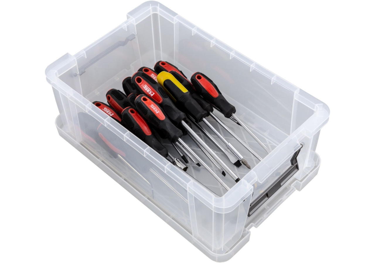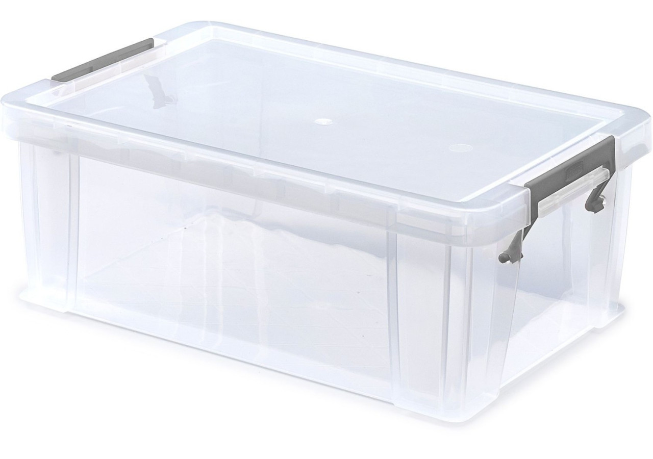 La Boîte de Rangement Allstore de 10 litres est la solution parfaite pour organiser vos affaires. Fabriquée en plastique durable, elle est dotée d'un couvercle transparent et d'une fermeture à clip pour garder vos objets en sécurité et à l'abri de la poussière. Facile à transporter grâce à ses poignées, elle est idéale pour tout ranger, des jouets aux documents.