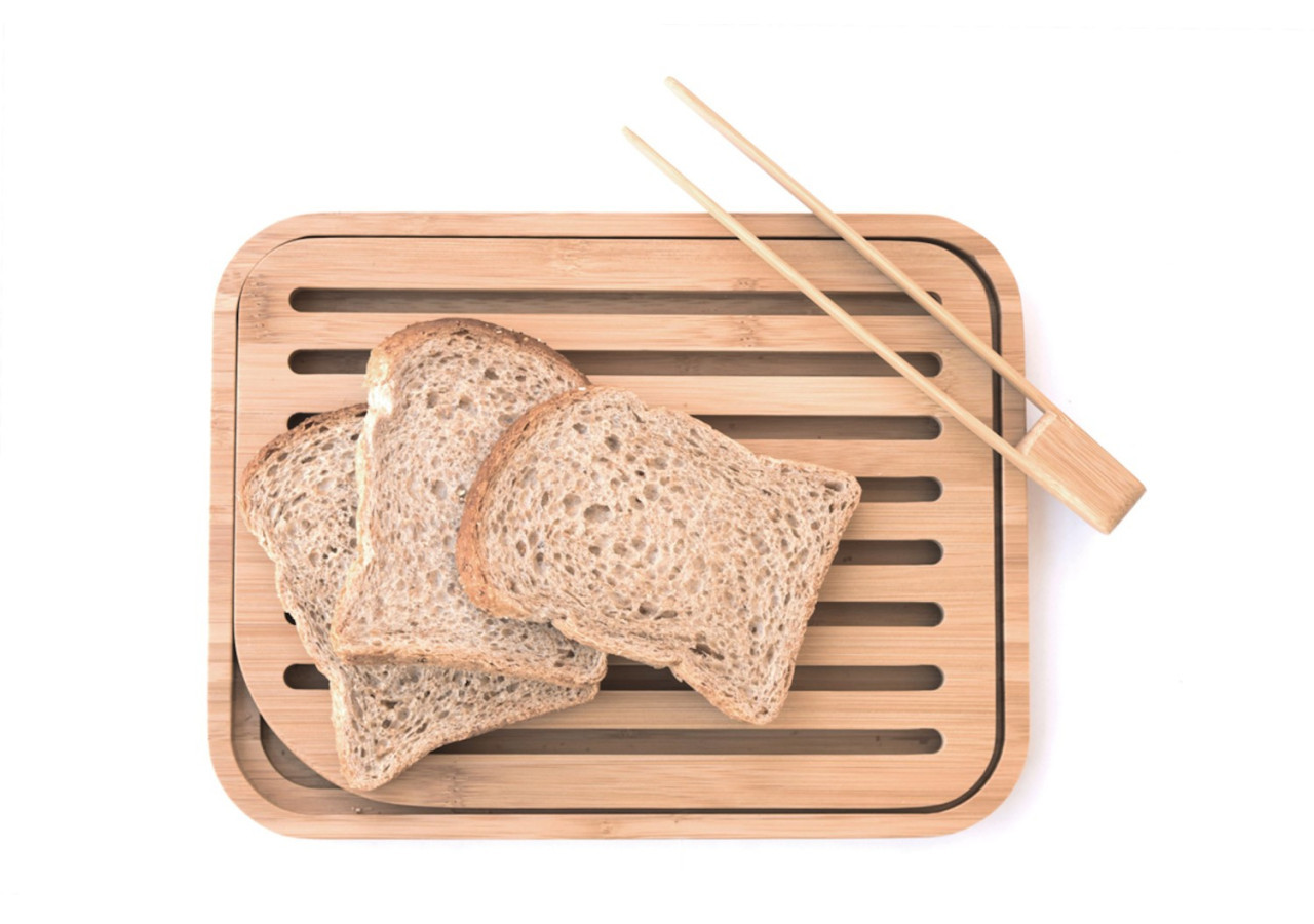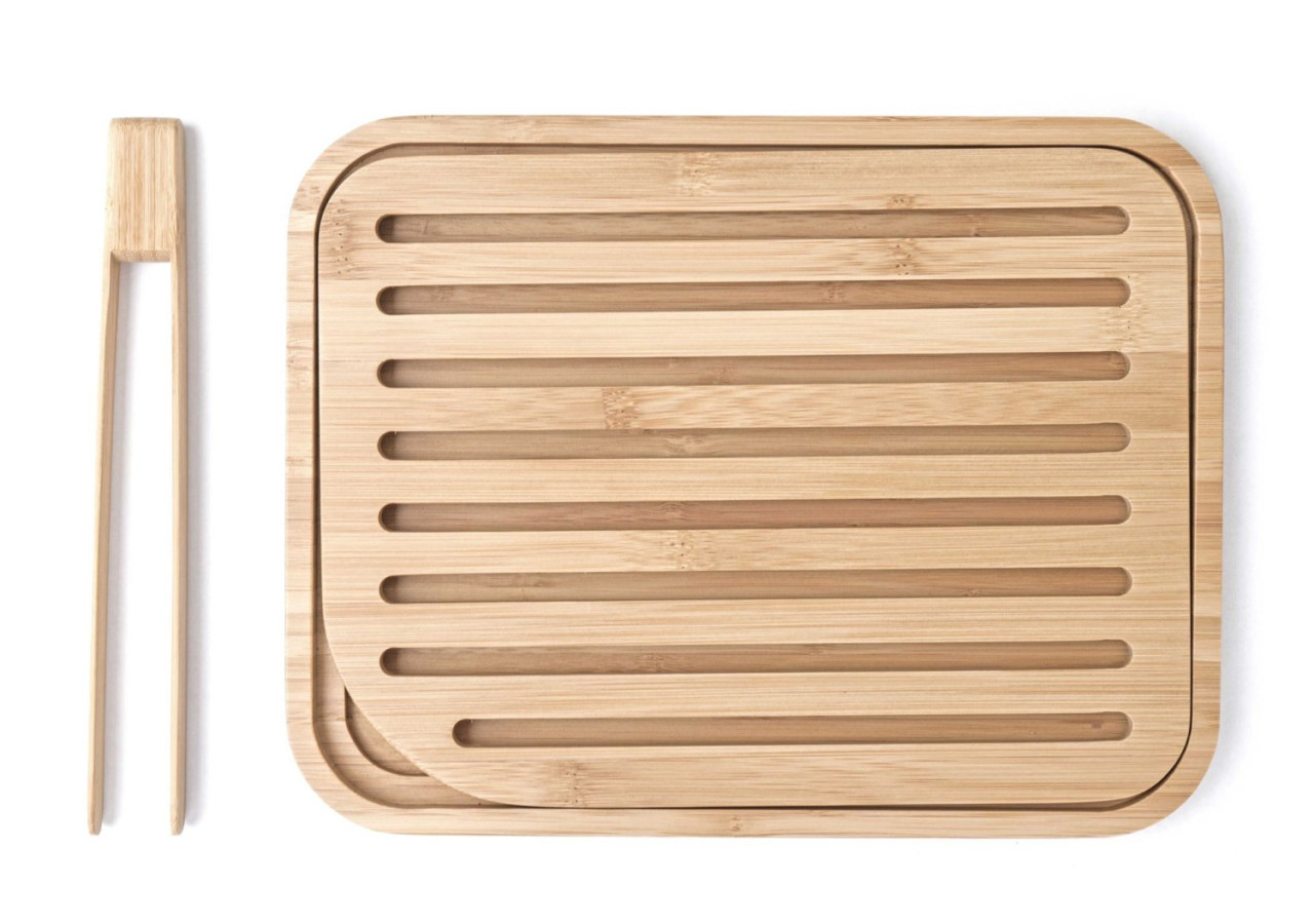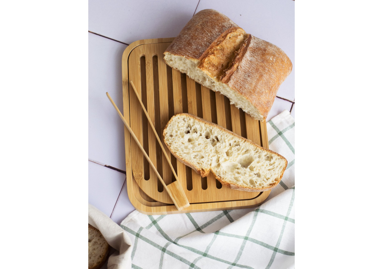 La Planche à pain Bamboe de Pebbly est à la fois esthétique et pratique. Mesurant 26 x 20 cm, elle dispose d'une couche supérieure amovible pour recueillir les miettes.