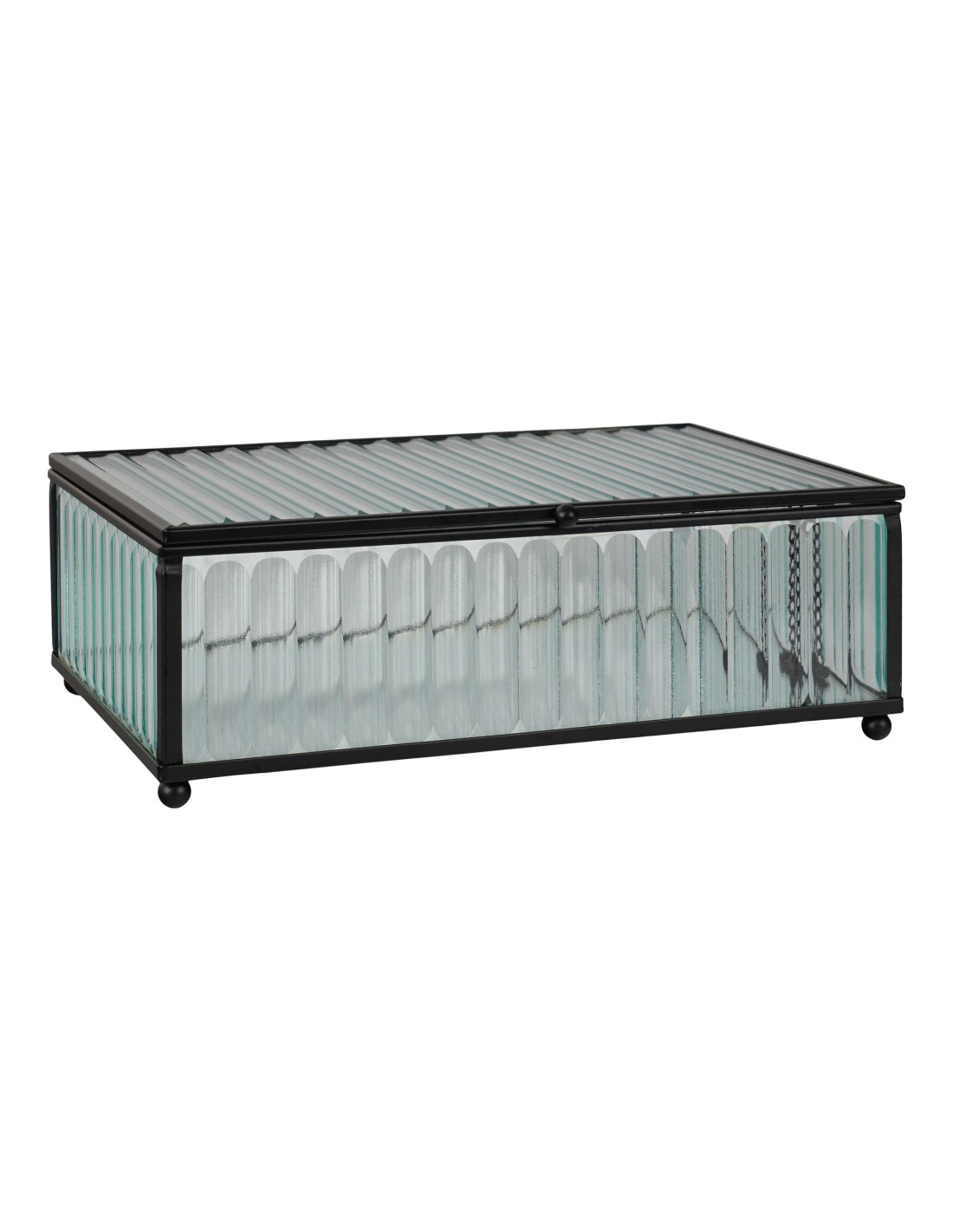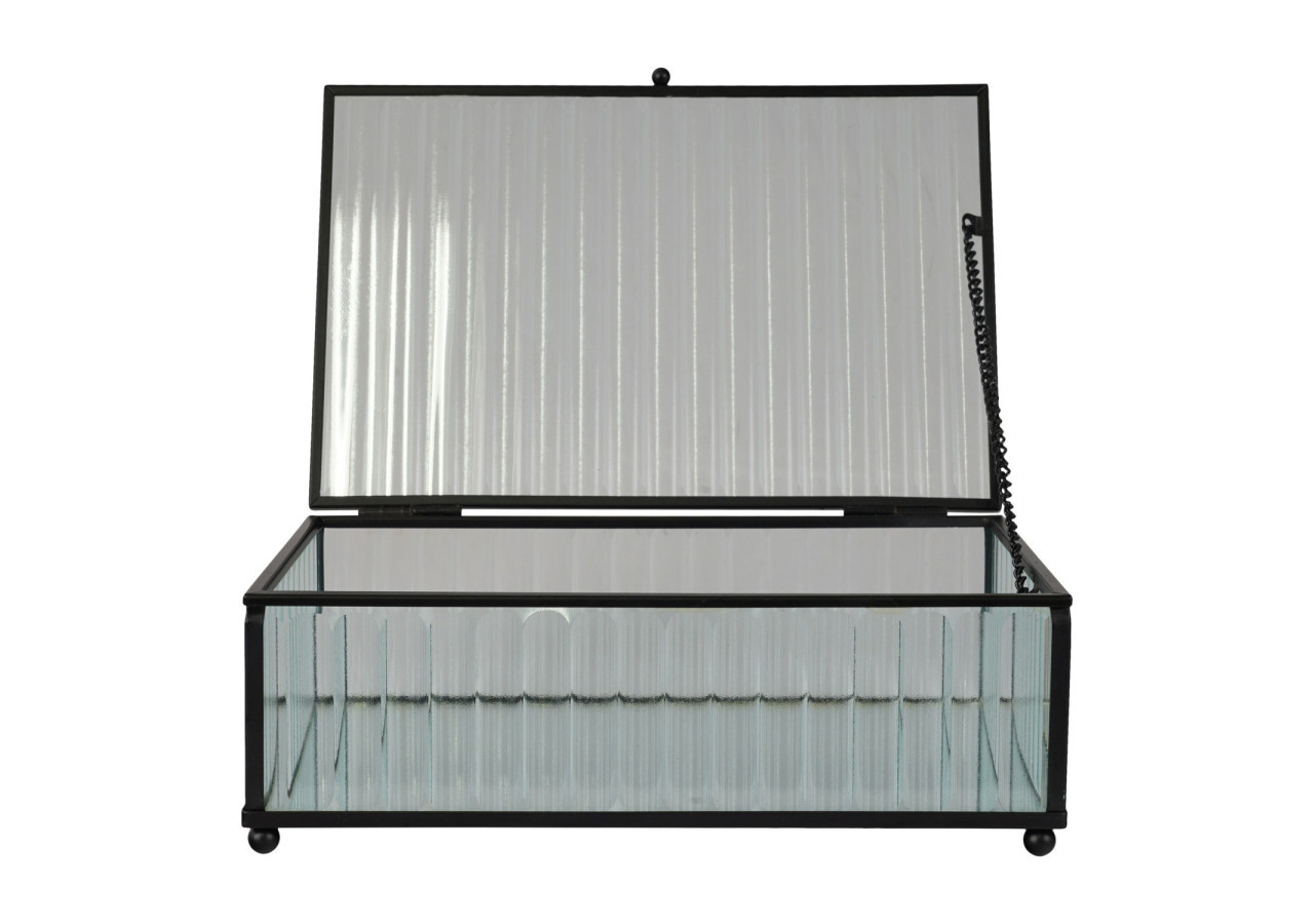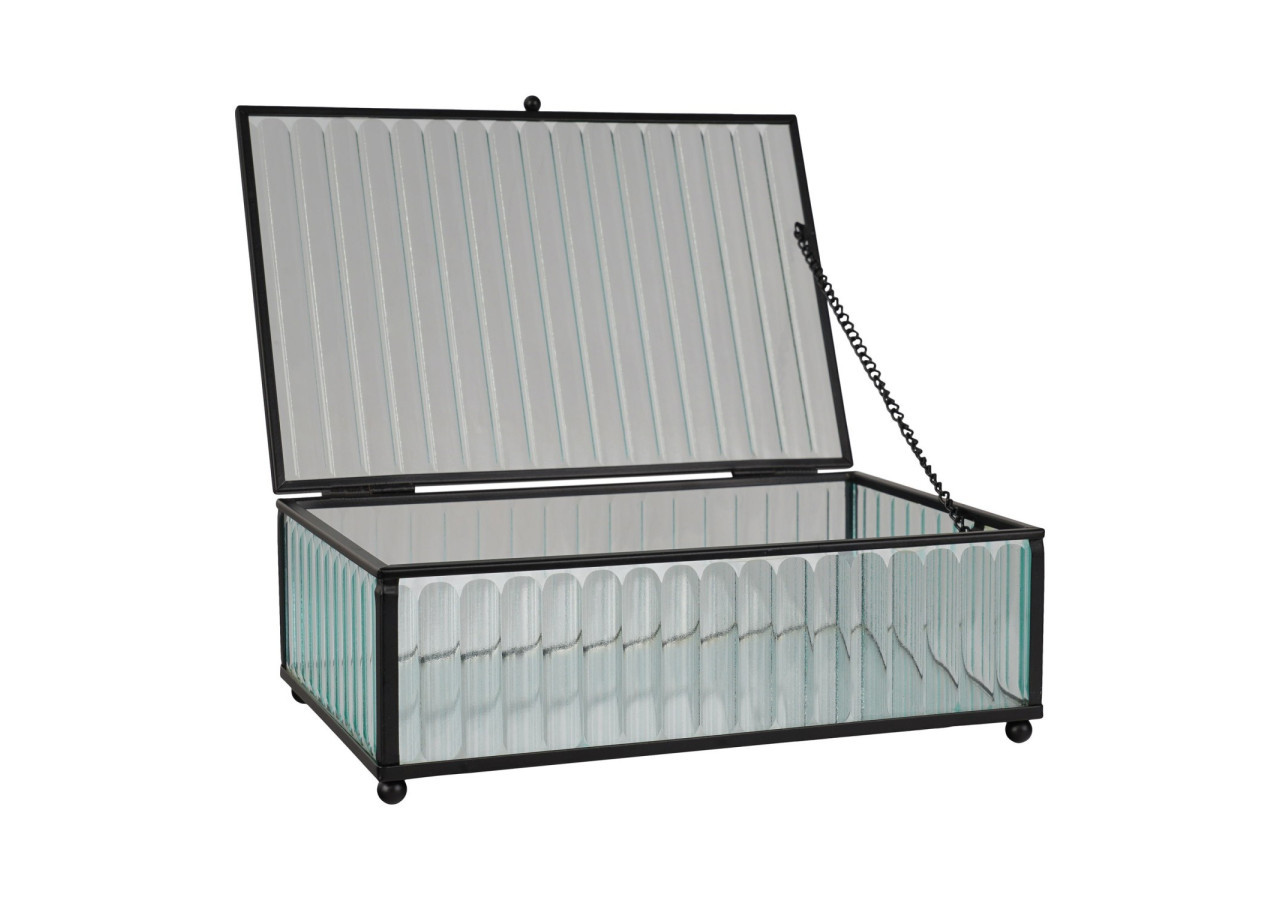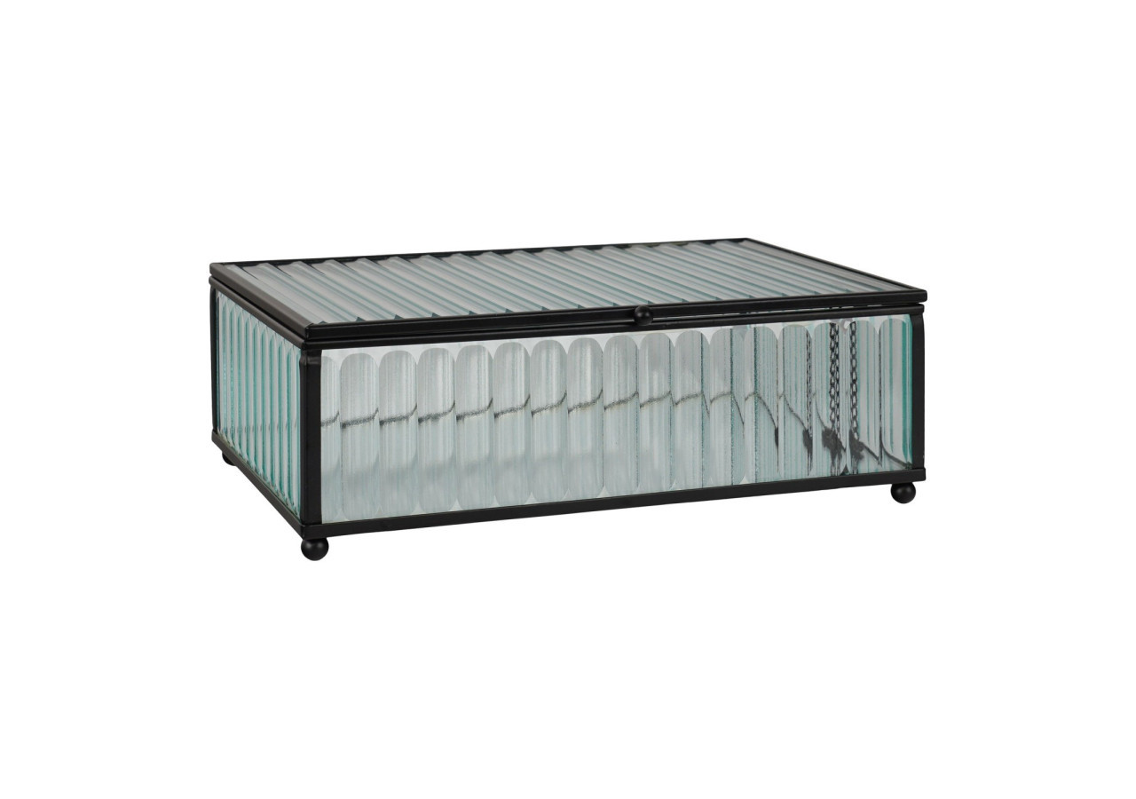 La boîte Santorini en verre et métal noir de 13x20x7 cm est l'accessoire parfait pour organiser vos petits objets tout en ajoutant une touche de sophistication à votre décoration. Son design élégant s'adapte à tous les styles d'intérieurs.