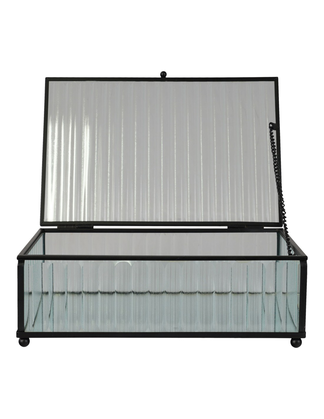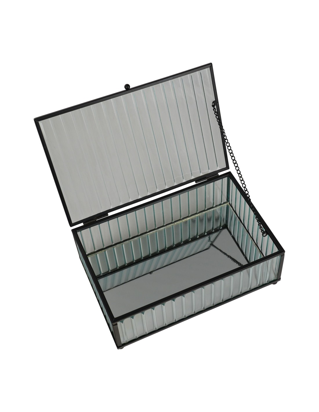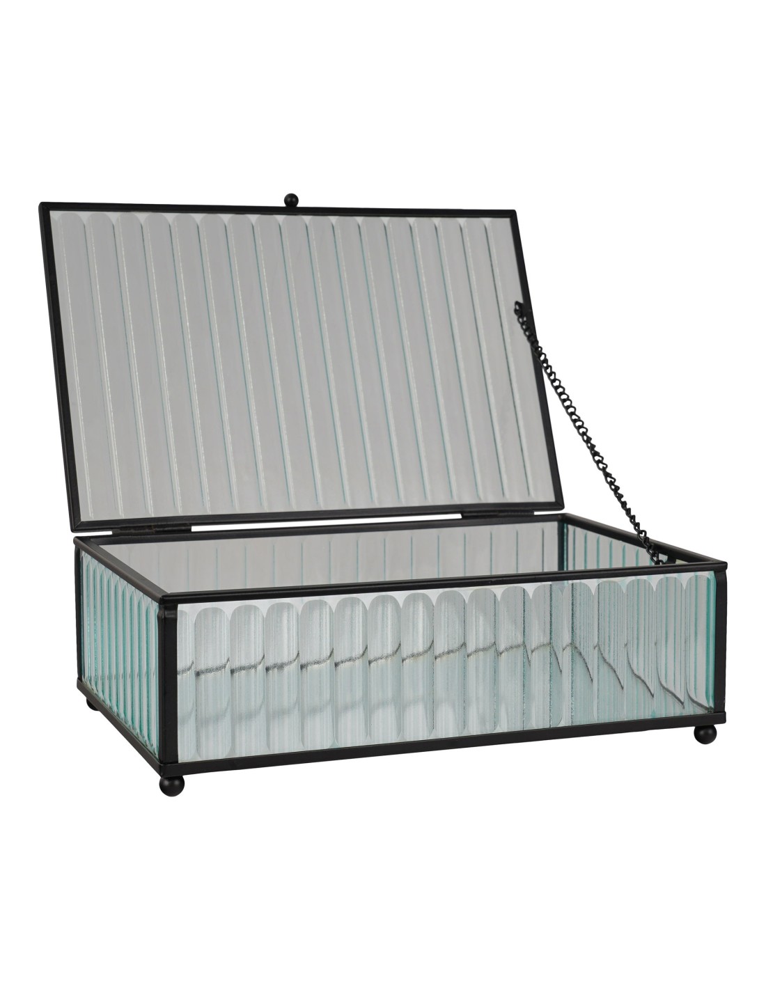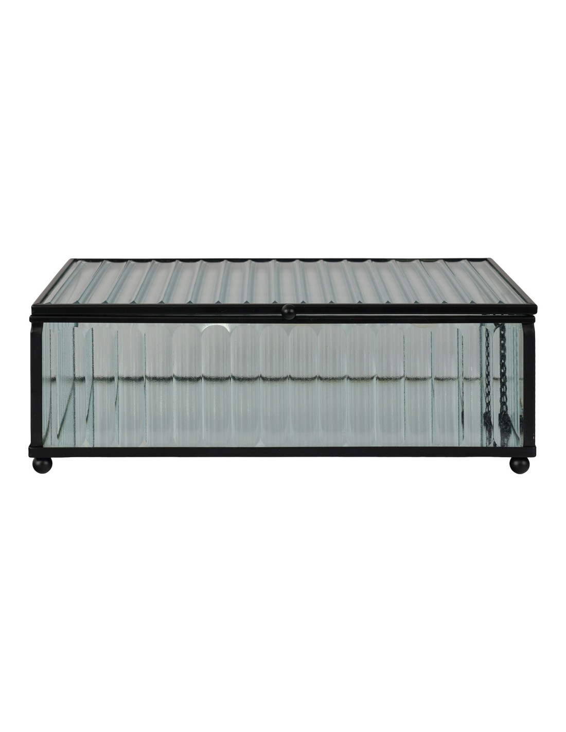La boîte Santorini en verre et métal noir de 13x20x7 cm est l'accessoire parfait pour organiser vos petits objets tout en ajoutant une touche de sophistication à votre décoration. Son design élégant s'adapte à tous les styles d'intérieurs.