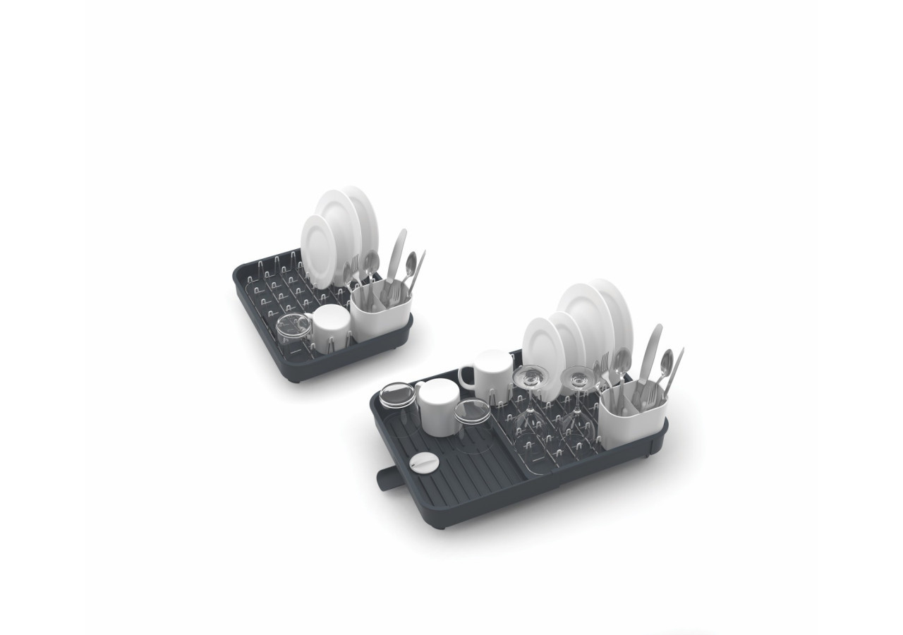 Optimisez votre espace avec l'Égouttoir Extensible de Joseph Joseph. Adapté pour les ménages de toutes tailles, il se déploie selon vos besoins, allant de 32 à 52,5 cm. Grâce à son bac à couverts amovible et son design astucieux, il facilite le séchage de votre vaisselle tout en gardant votre plan de travail propre. La fonction de drainage évite l'accumulation d'eau et simplifie le rangement.