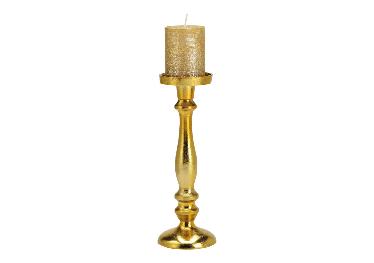 Éclairez votre intérieur avec ce bougeoir multifonction en métal. Sa taille généreuse et sa finition or en font un élément central de votre décoration.