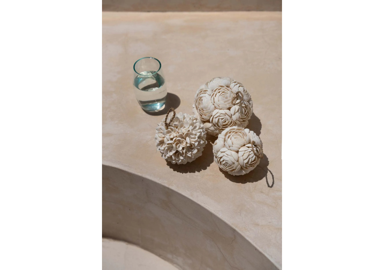 Découvrez nos boulés en coquillage rose, entièrement faits à la main par des artisans balinais. Chaque boule est dotée d'un cordon pour un accrochage facile. Parfaites pour être exposées dans une coupe, pour orner vos murs ou ajouter une touche bohème à votre intérieur.