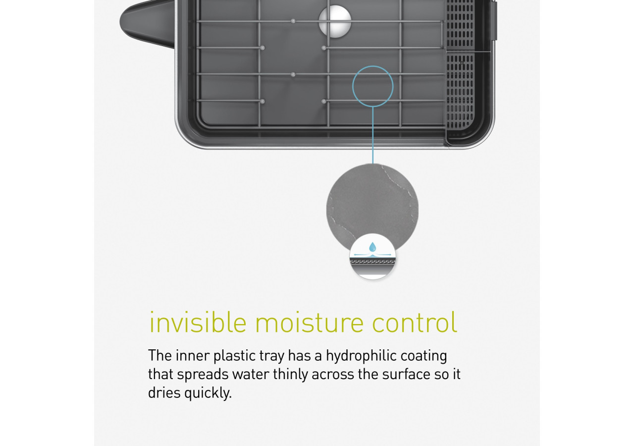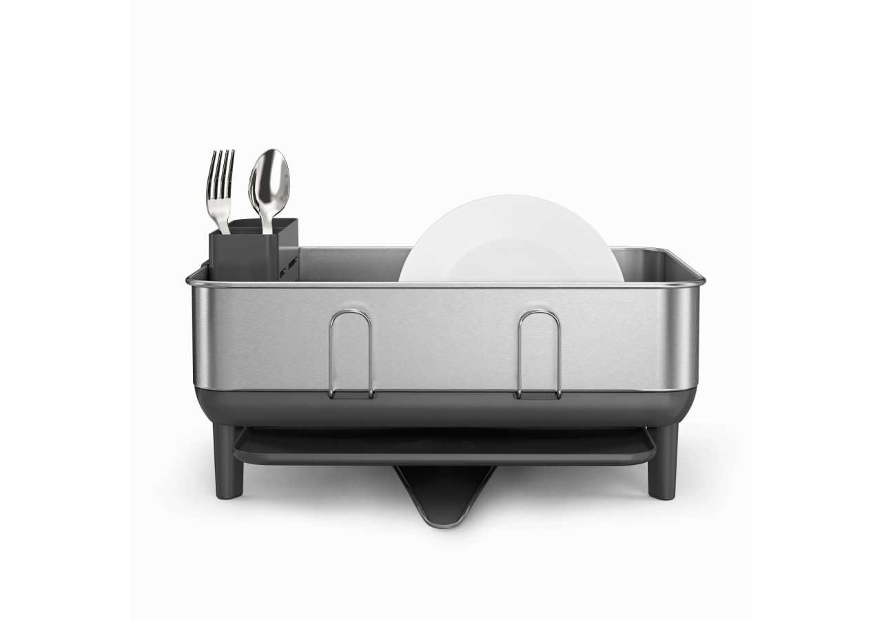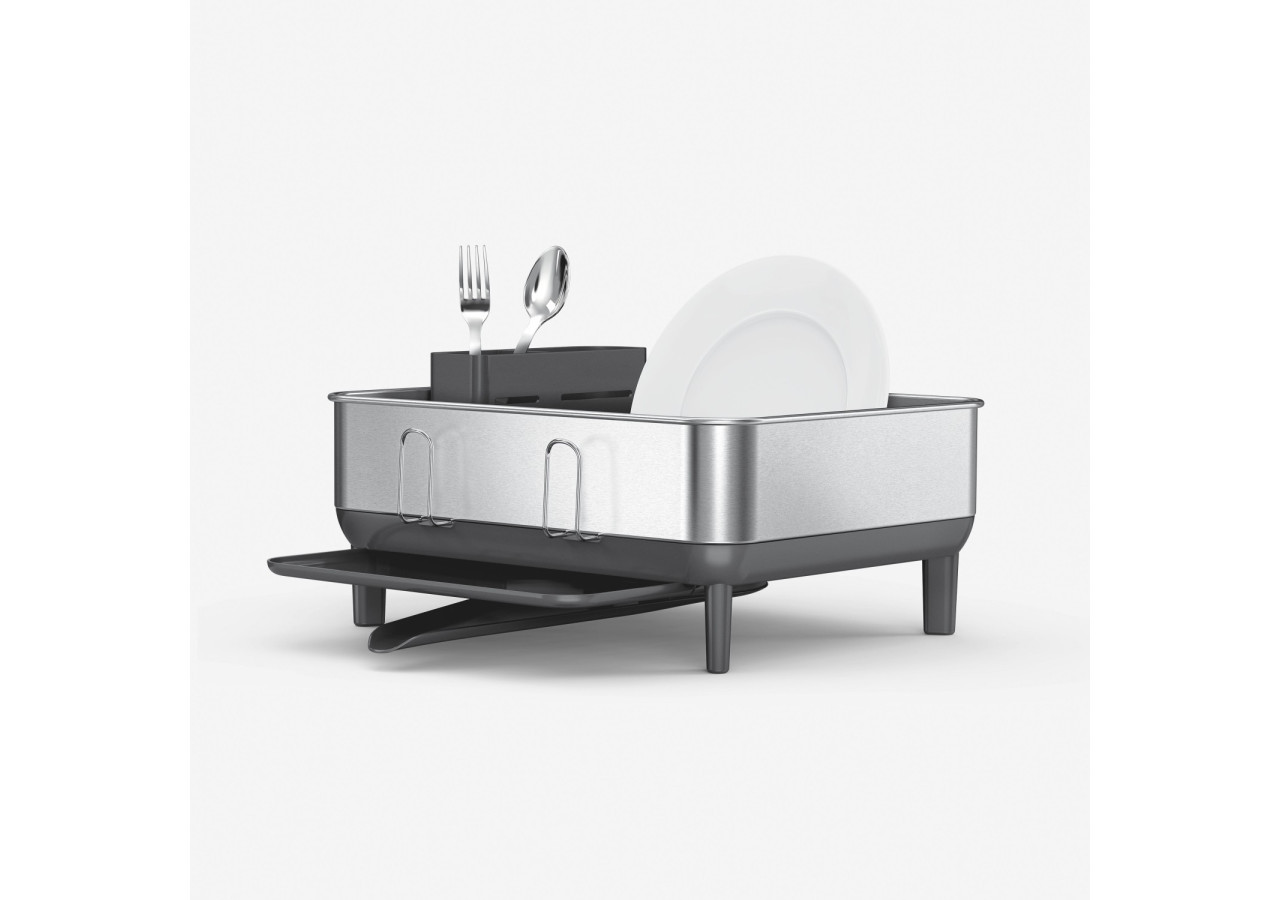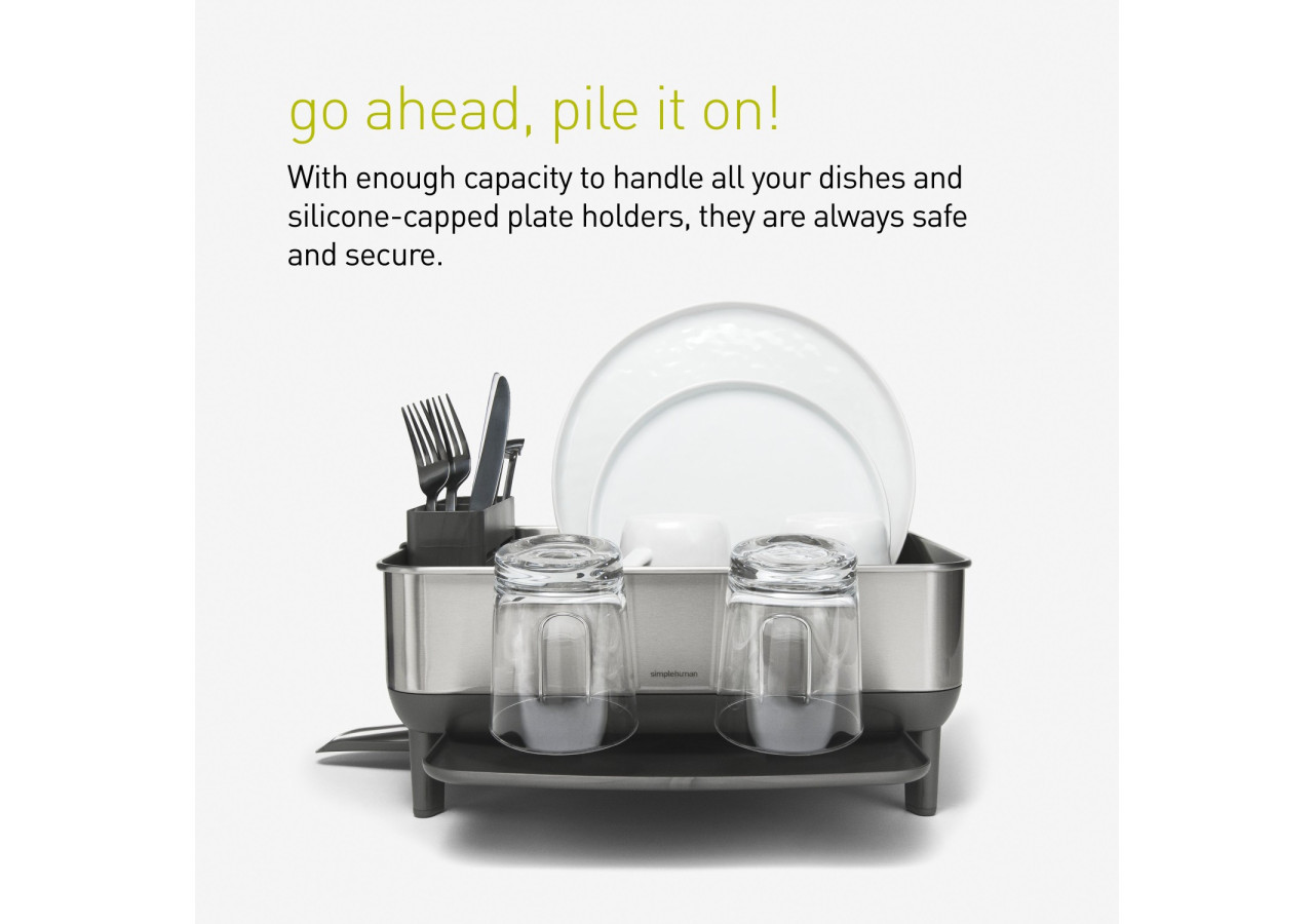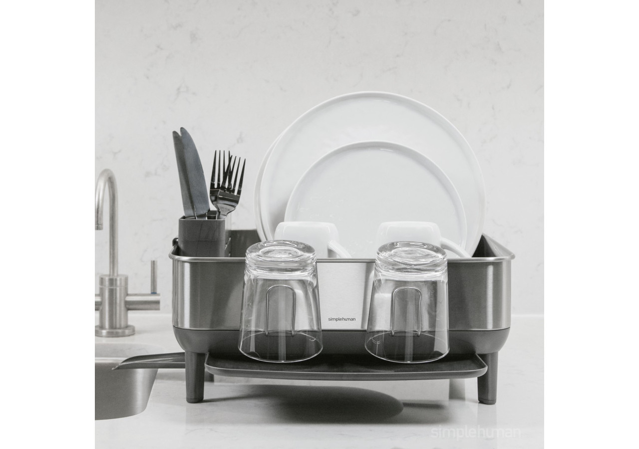 Découvrez le égouttoir compact Simplehuman, conçu pour accueillir tout votre service de vaisselle tout en assurant une drainage optimal. Fabriqué avec un cadre en acier robuste, cet égouttoir comprend plusieurs compartiments astucieux, incluant un support à verres et une base antidérapante.