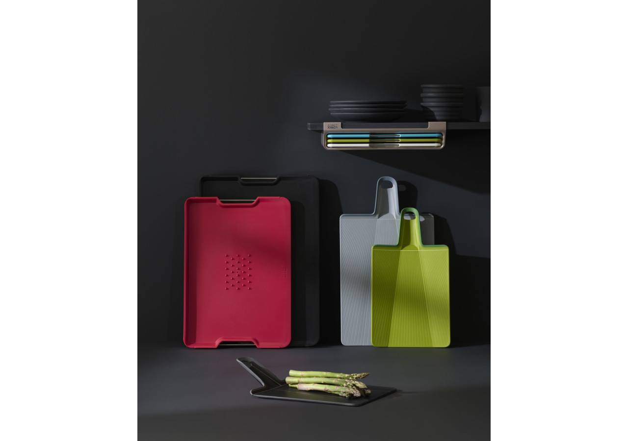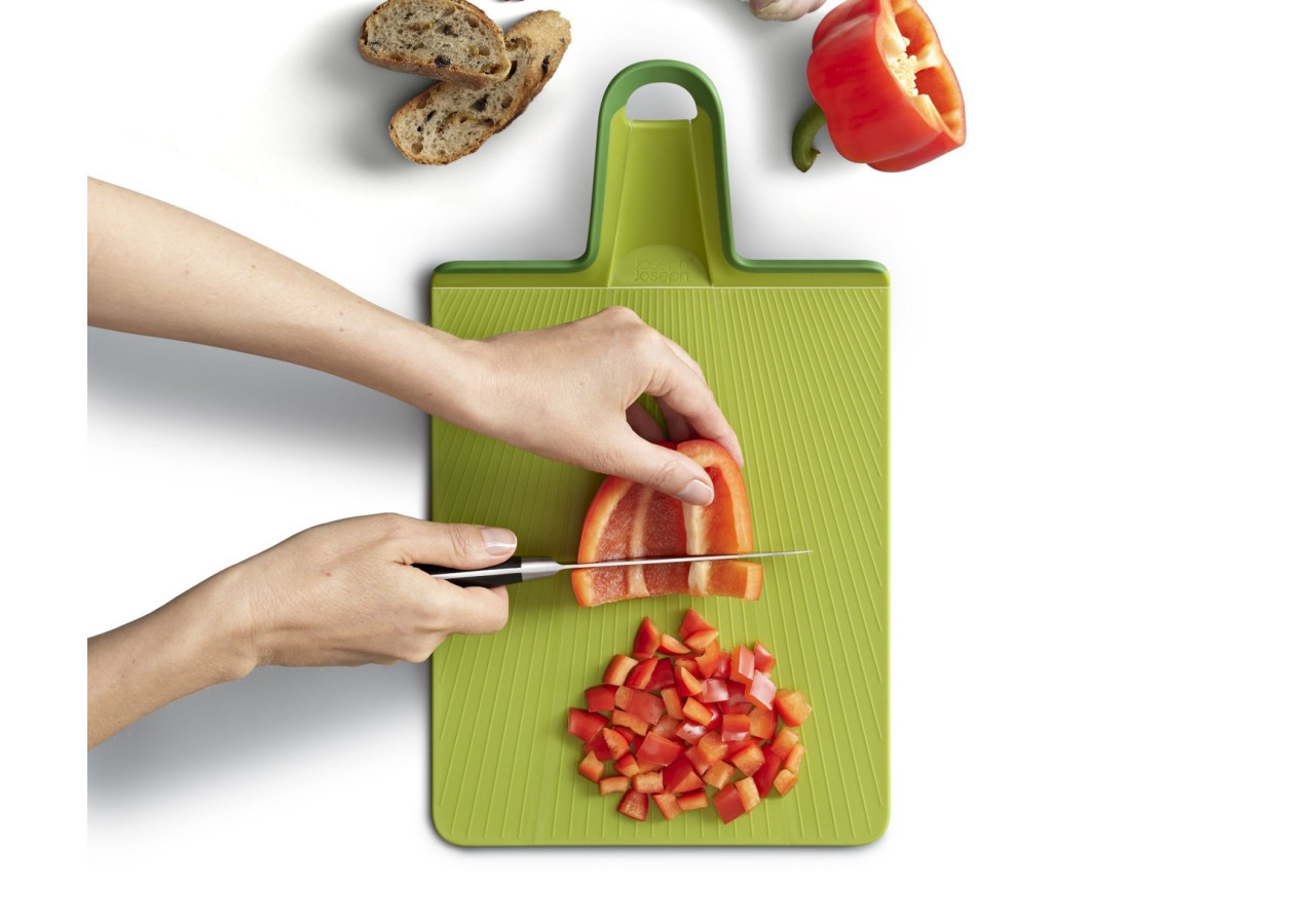 Découvrez la planche à découper Chop2Pot Plus de Joseph Joseph, une planche innovante avec une technique de charnière qui facilite le transfert des aliments. Il suffit de presser la poignée pour plier les bords et faire glisser vos ingrédients directement dans la casserole.