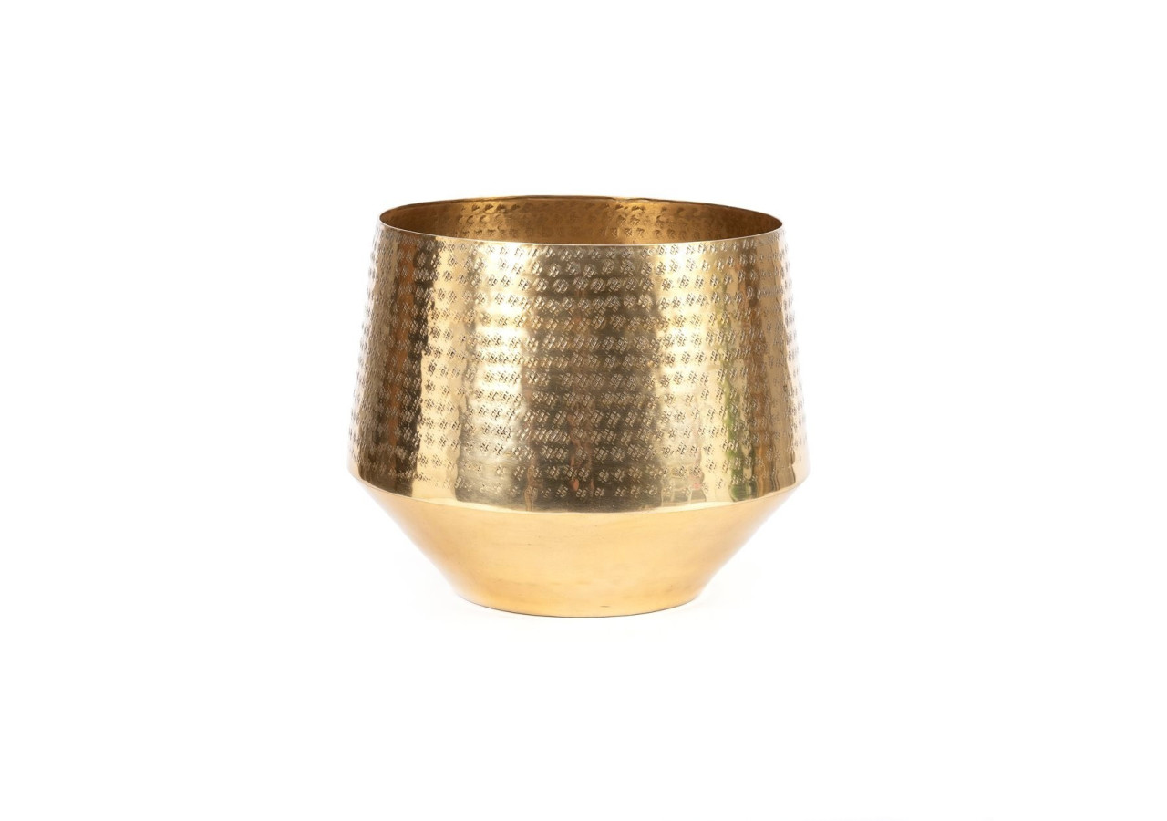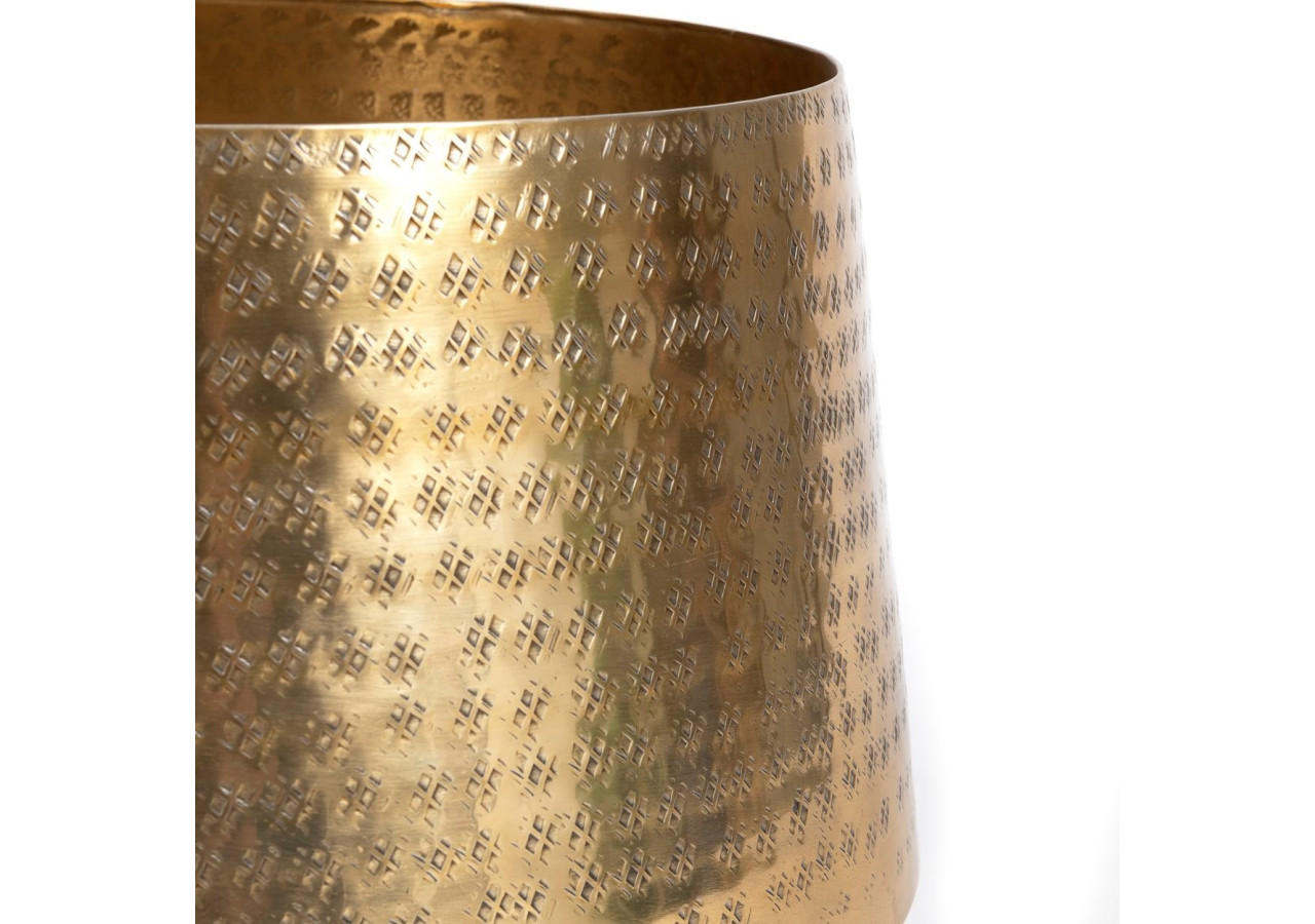 Ajoutez une touche de classe à votre espace avec le Cache-pot Hammered. Fabriqué en laiton avec une texture martelée unique, il apporte une esthétique orientale à votre intérieur. Son design conique est parfait pour mettre en valeur vos plantes.