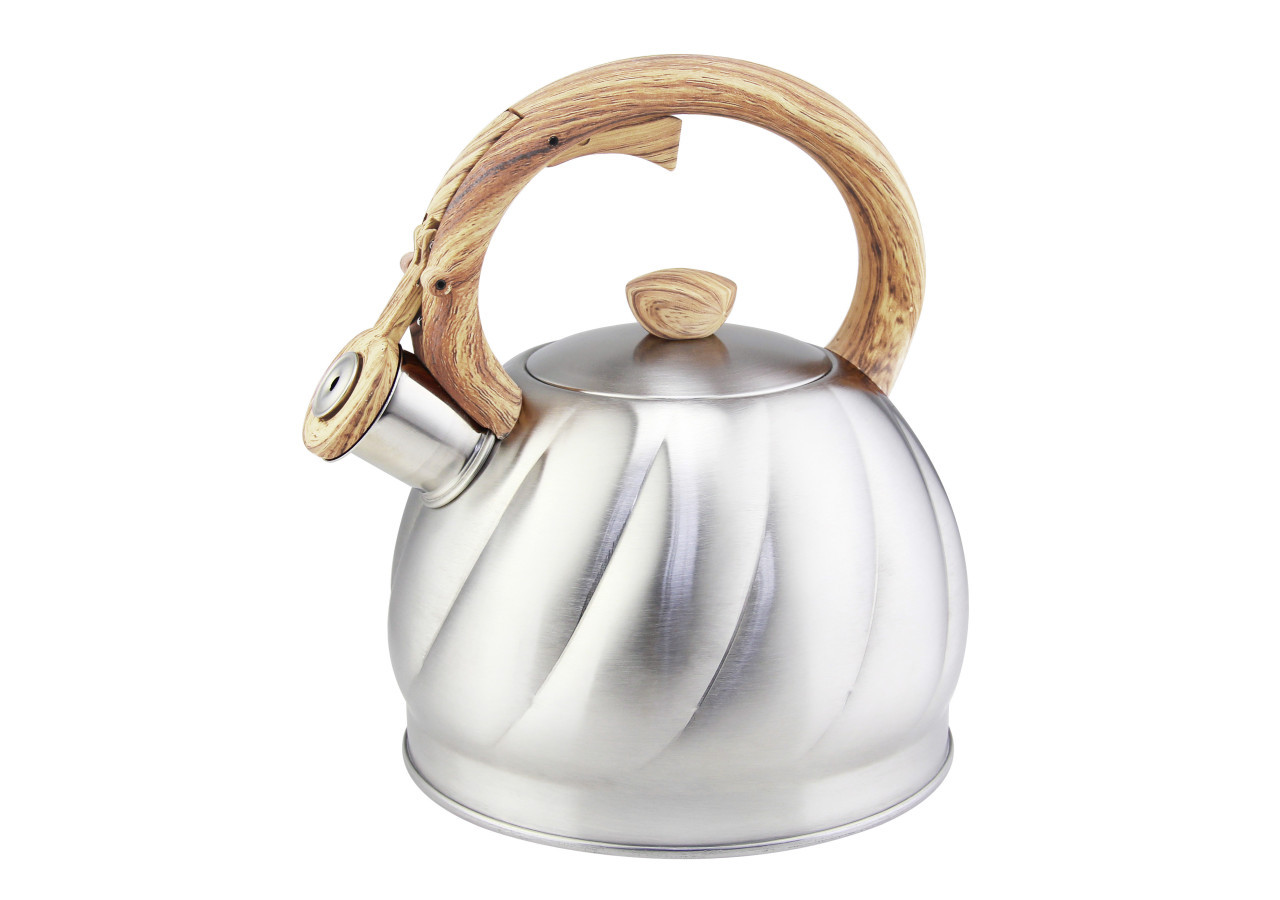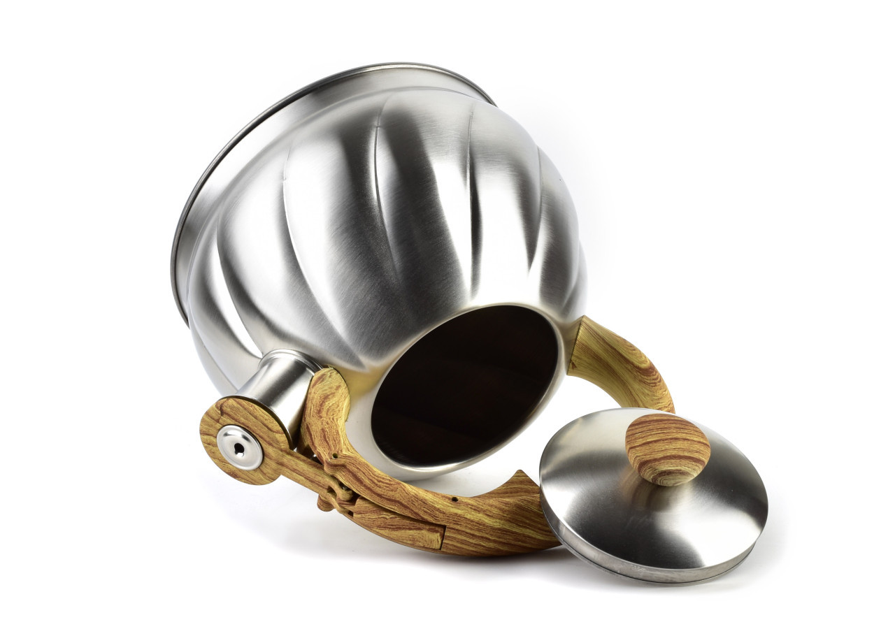 Fabriquée en acier inoxydable, elle combine durabilité et design moderne. Sa poignée ergonomique garantit une utilisation simple et sécurisée, tandis que le sifflet signale que l'eau est prête.