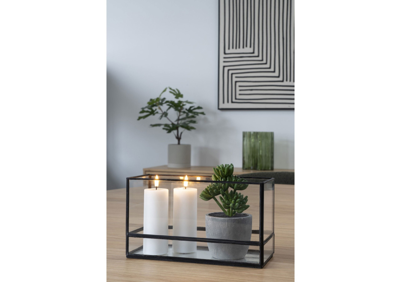 Le Bougeoir Ouragan est l'accessoire parfait pour ajouter une touche d'élégance à votre décoration. Équipé d'un système de sécurité, il protège vos bougies des courants d'air tout en diffusant une lumière douce et apaisante. Idéal pour vos moments de détente.