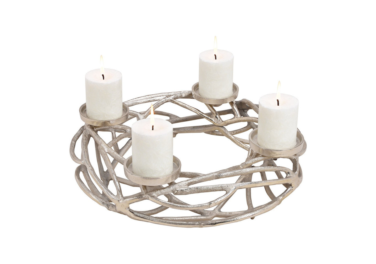Créez une ambiance chaleureuse avec notre couronne de l'Avent en métal argenté. Avec des dimensions de 40x12x40 cm, elle est conçue pour accueillir vos bougies et apporter une touche festive à votre décor. Un accessoire incontournable pour célébrer la saison des fêtes.