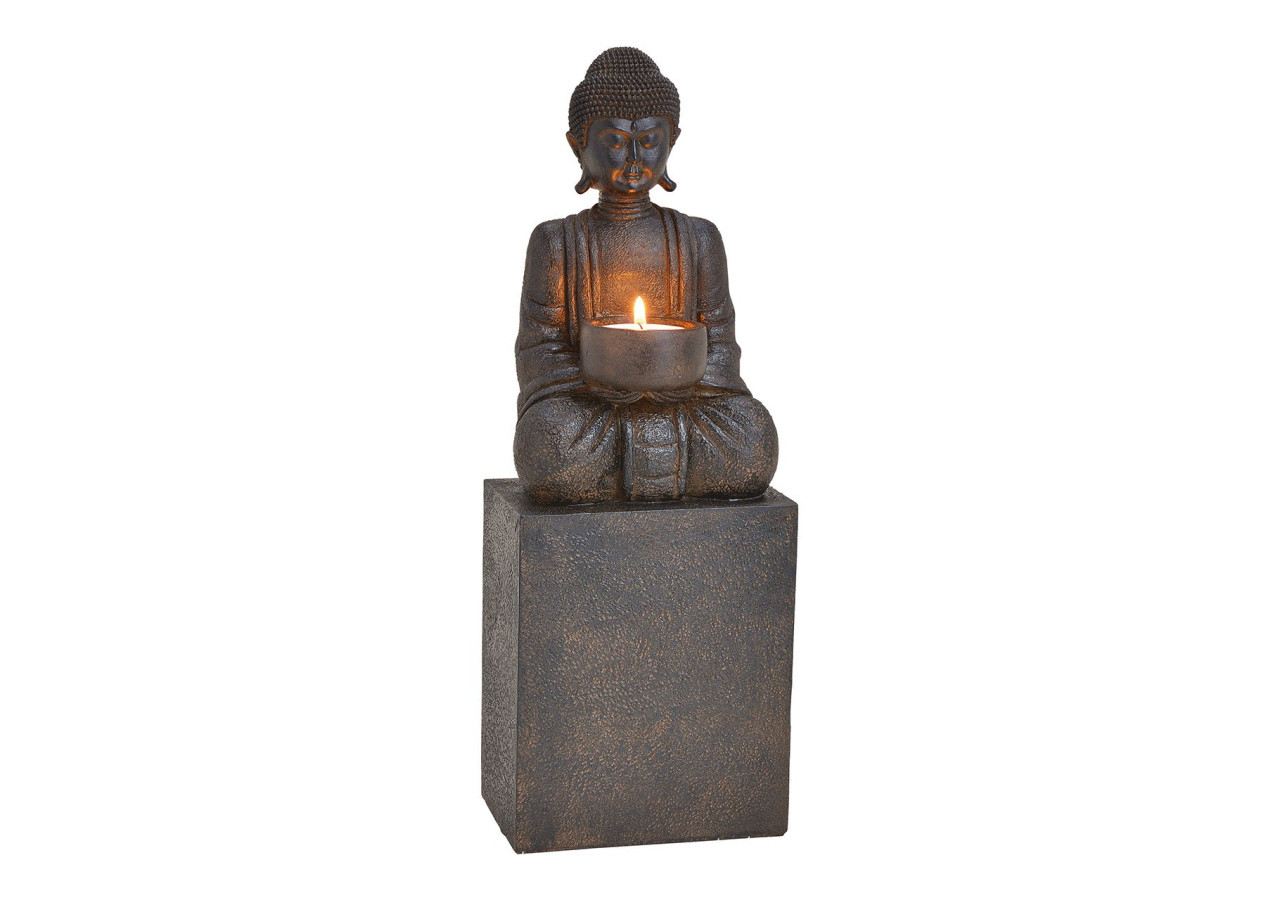 Ce bougeoir Bouddha en polyuréthane est parfait pour apporter une ambiance sereine à votre espace. Son design élégant et apaisant est idéal pour vos moments de détente. Dimensions : 12x35x9cm.