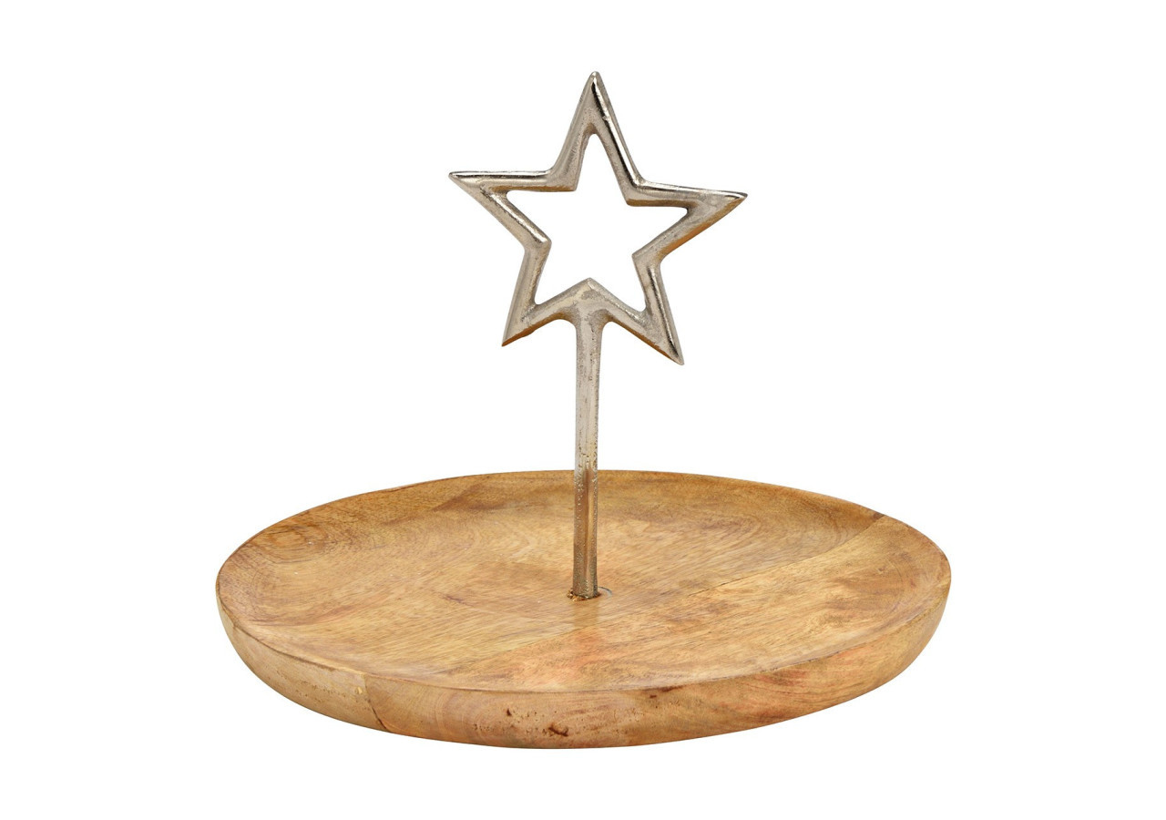 Ajoutez du charme à votre déco avec notre assiette décorative en forme d'étoile. Fabriquée en métal et bois de mangue, elle mesure 25x22x25cm et apporte une touche naturelle à votre intérieur. Idéale pour vos événements ou comme objet de décoration.