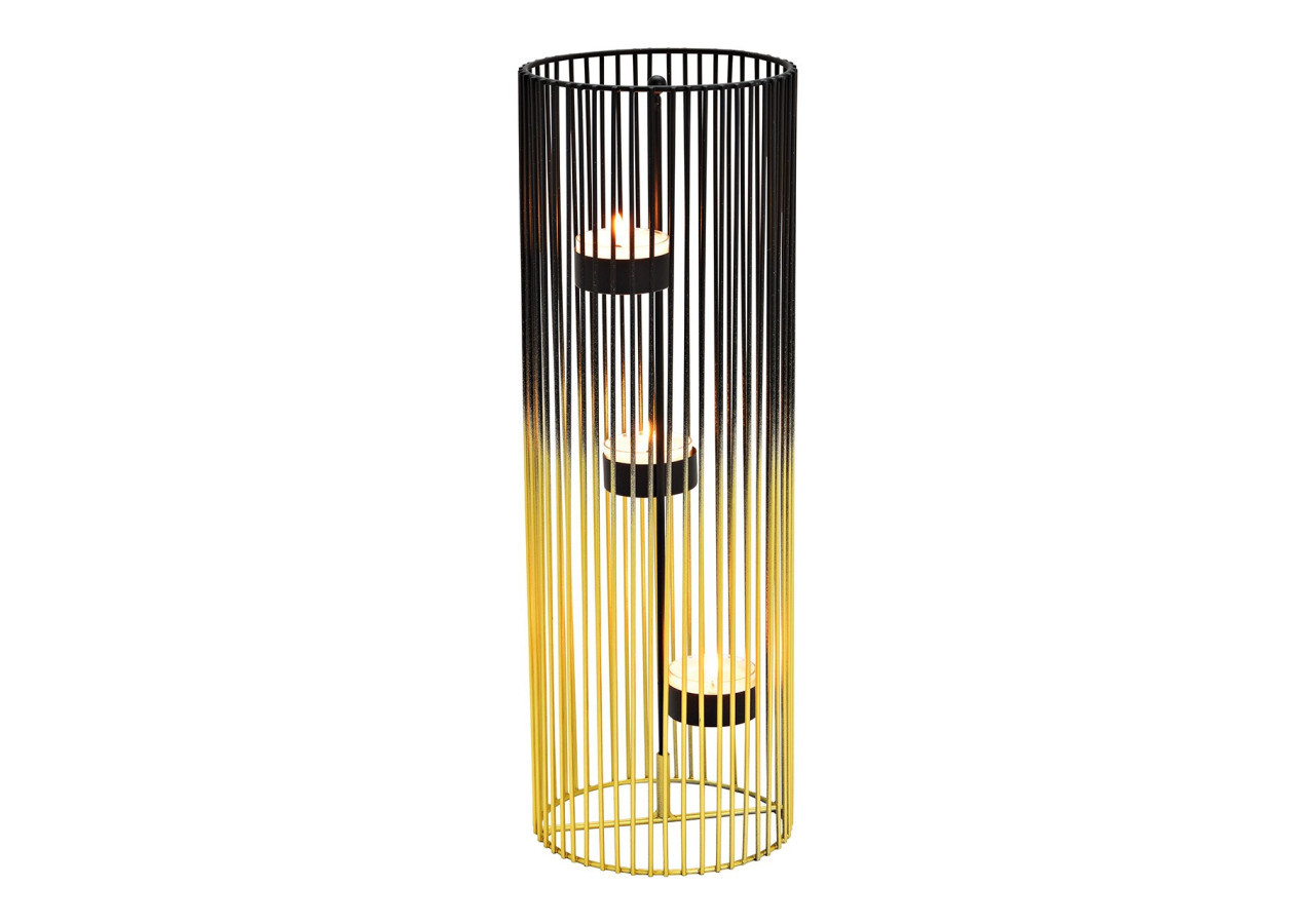 Apportez une touche d'élégance à votre intérieur avec ce support à bougies en métal noir et or. Mesurant 12x34x12cm, il est parfait pour créer une ambiance chaleureuse lors de vos soirées.