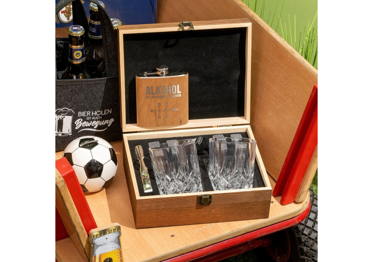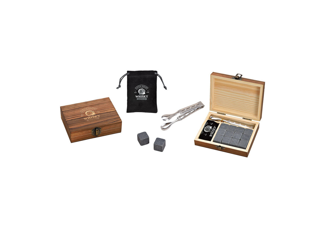 Élevez vos moments de dégustation avec ce Set de Verres à Whisky comprenant des glaçons en pierre de basalte. Chaque pièce est soigneusement conçue pour offrir une expérience de dégustation optimale. Le tout est présenté dans une élégante boîte en bois grise, dimensions 13x10x4cm.