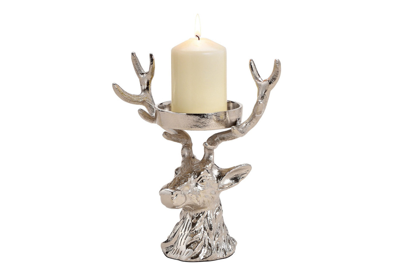 Illuminez vos soirées avec ce Bougeoir Cerf en Métal Argenté. Avec ses dimensions de 19x20x12cm, il apporte une touche unique et festive à votre décoration tout en créant une atmosphère chaleureuse.