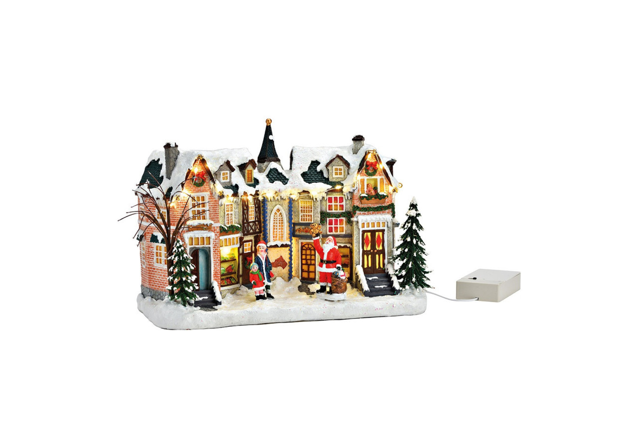 Faites entrer la magie de Noël chez vous avec cette scène d'hiver qui met en vedette le Père Noël au marché. Avec ses LED, elle mesure 28x19x13cm et fonctionne sur piles (3xAA non incluses). Un incontournable pour raviver l'esprit des fêtes !