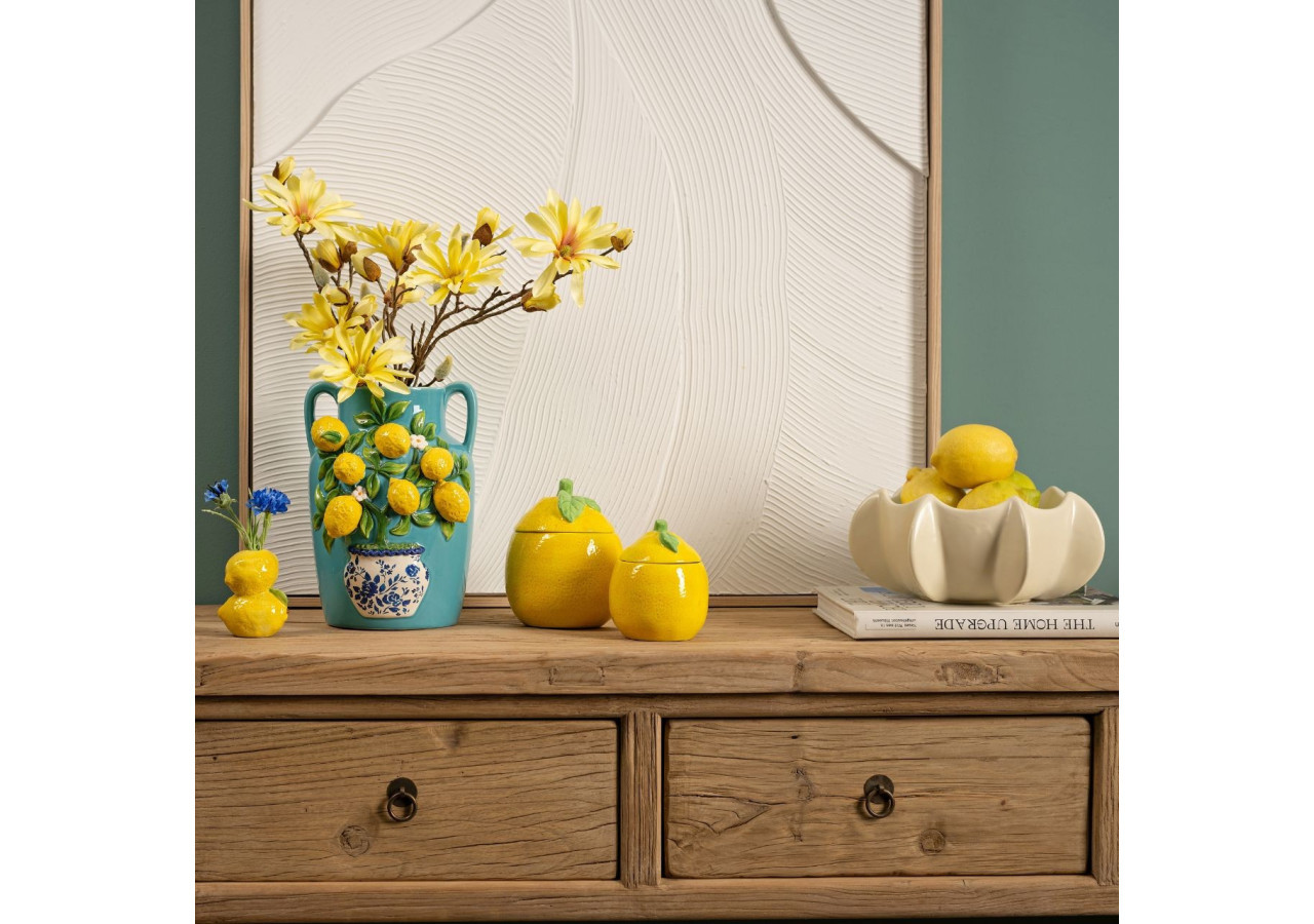 Ajoutez de la couleur à votre intérieur avec notre vase en céramique 3D orné d'un décor de citron. Ses dimensions de 20x26x20cm en font un choix audacieux pour mettre en valeur vos fleurs.