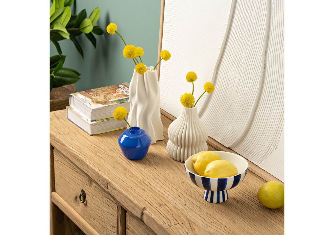 Ajoutez une touche d'élégance à votre intérieur avec notre bol décoratif en céramique à rayures bleu et blanc. Avec des dimensions de 17 x 10 x 17 cm, ce bol est parfait pour mettre en valeur vos petites décorations ou pour servir vos collations. Son design moderne et chic s'intégrera facilement dans tout type de décoration.
