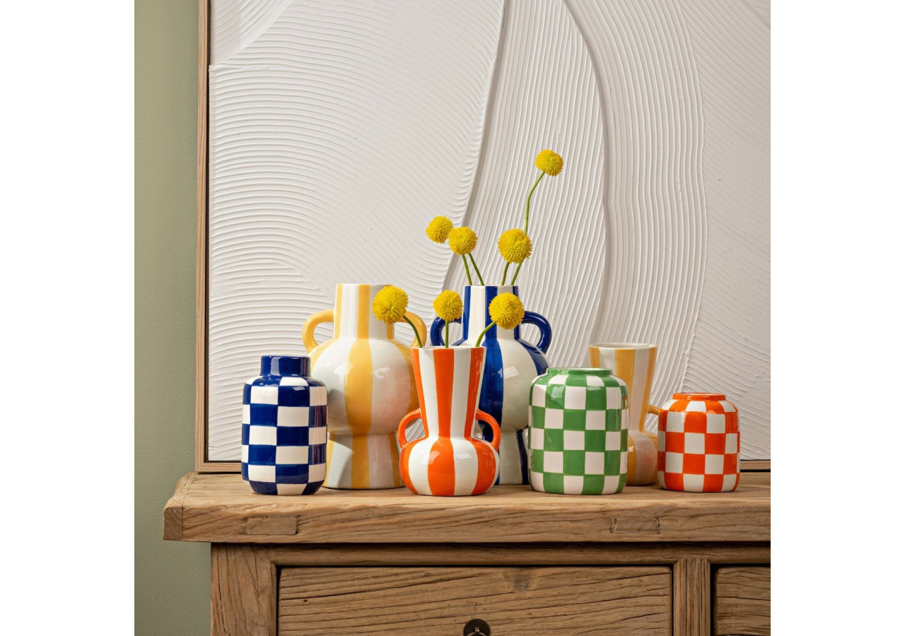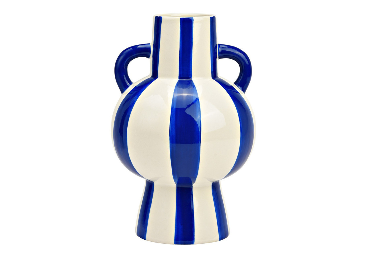 Ce vase en céramique aux rayures bleues et blanches est l'accessoire idéal pour mettre en valeur vos fleurs préférées. Sa forme élégante et moderne s'intègre parfaitement dans n'importe quel style de décoration, ajoutant une note de sophistication à votre intérieur.