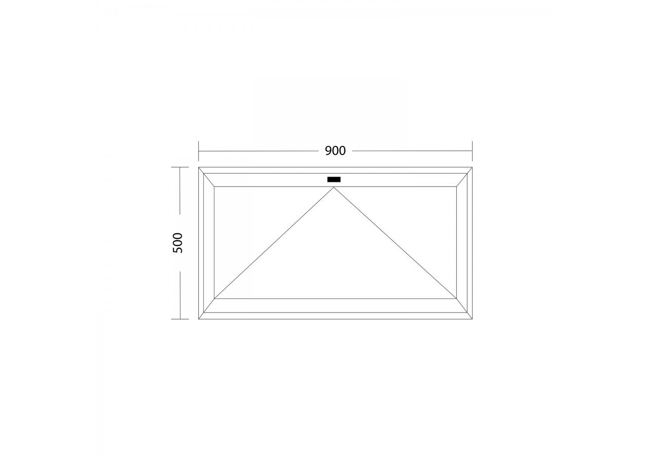 Pour cette fenêtre de cave soufflet, la largeur du châssis est de 900 mm et la hauteur du châssis est de 500 mm.