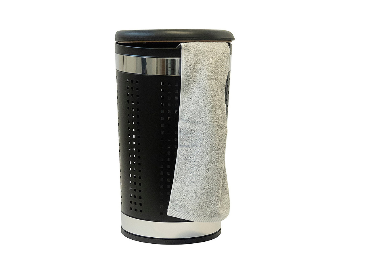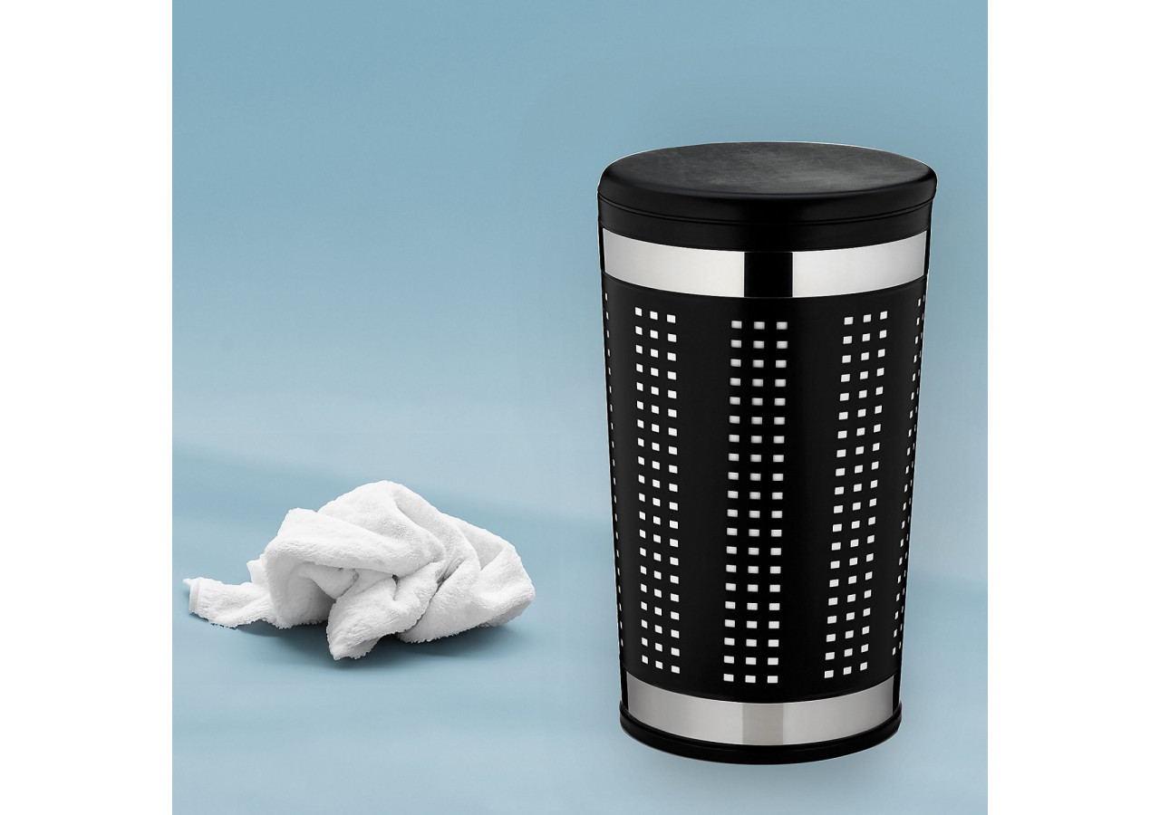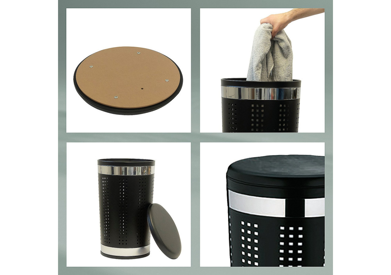 Alliez style et fonctionnalité avec le panier à linge Sevilla. Fabriqué en métal noir revêtu, ce panier d'une hauteur de 60,5 cm offre un espace généreux pour votre linge tout en servant également de siège confortable grâce à son couvercle rembourré.