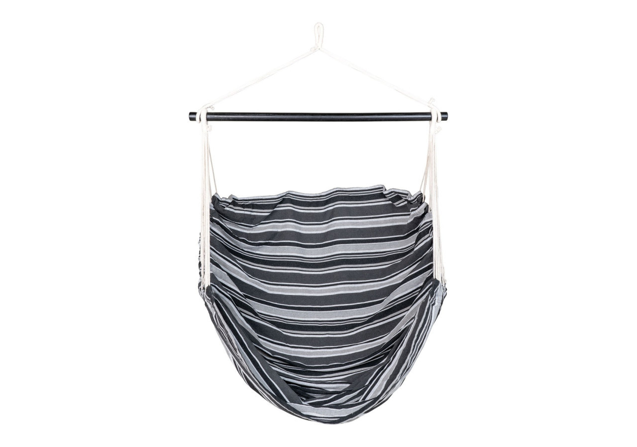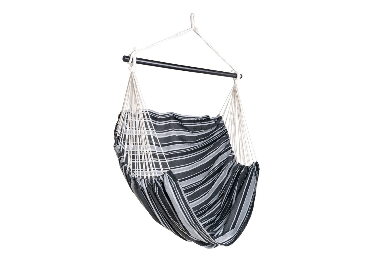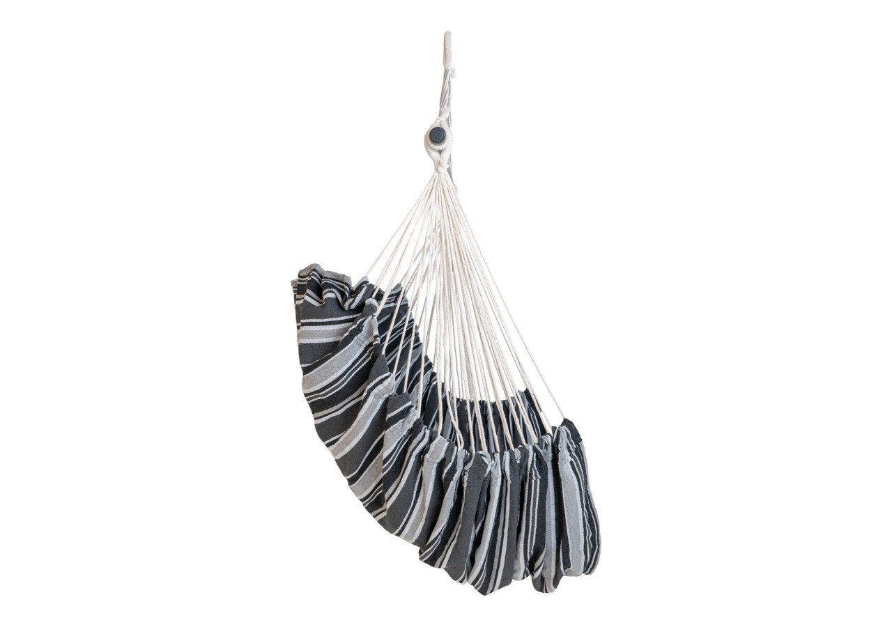Profitez de moments de détente avec la Chaise Hamac Lamia. Fabriquée en polyester et coton, elle offre un confort optimal tout en ajoutant une touche moderne à votre espace extérieur grâce à son design noir, gris et blanc sur bois de mélèze.