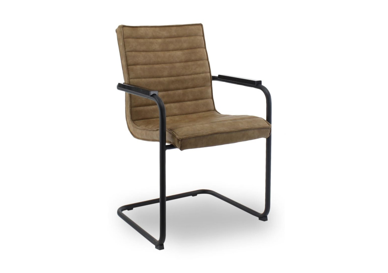Conçue en cuir vegan, cette chaise est à la fois élégante et respectueuse de l'environnement. Son cadre est doté de patins anti-bascule à l'avant pour une utilisation sécurisée.