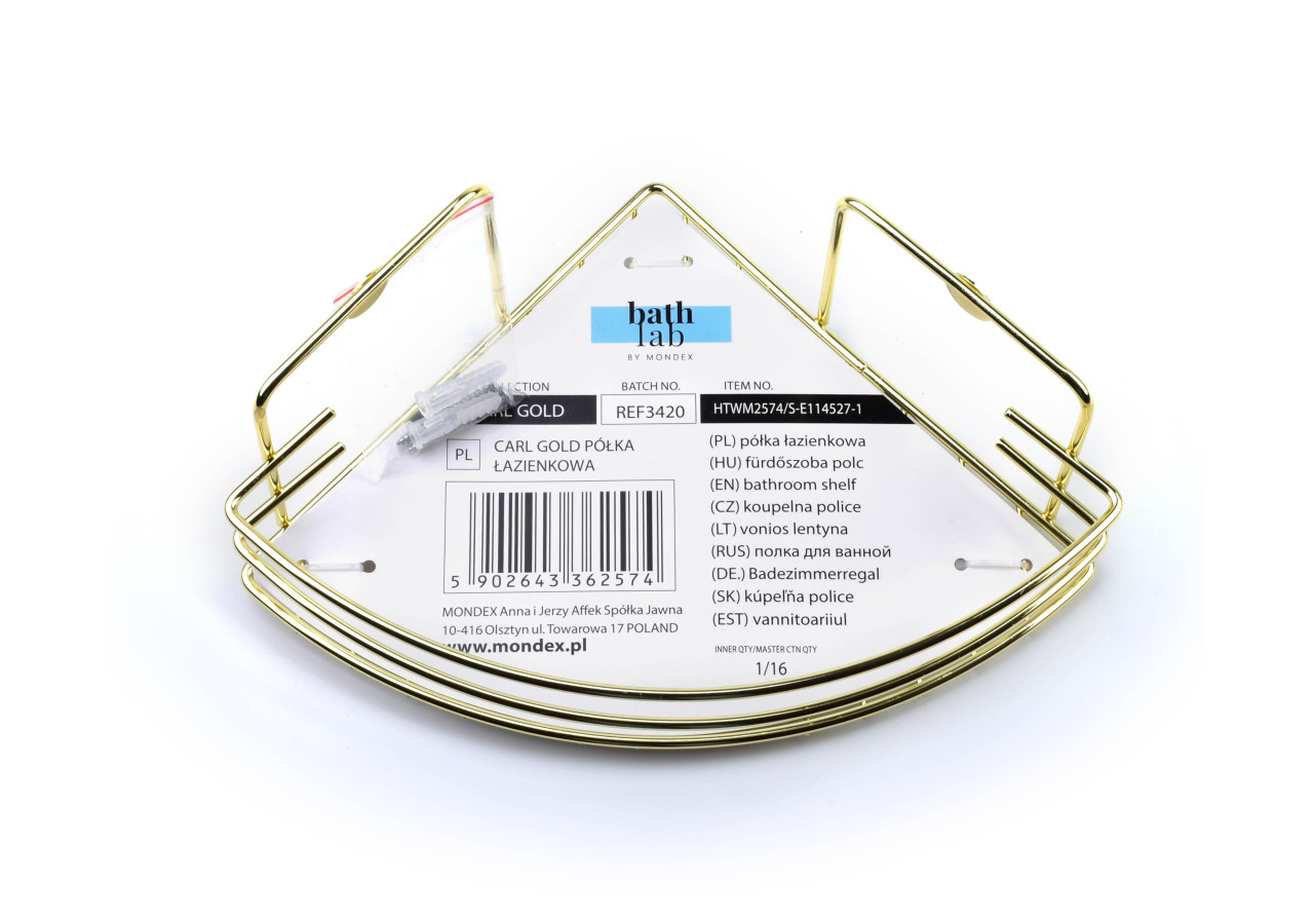 Ajoutez une touche dorée à votre salle de bain avec l'étagère CARL GOLD. Avec sa finition brillante, elle est parfaite pour ranger vos essentiels. D'une dimension de 9 x 19 x 19 cm, elle se fixe facilement au mur.