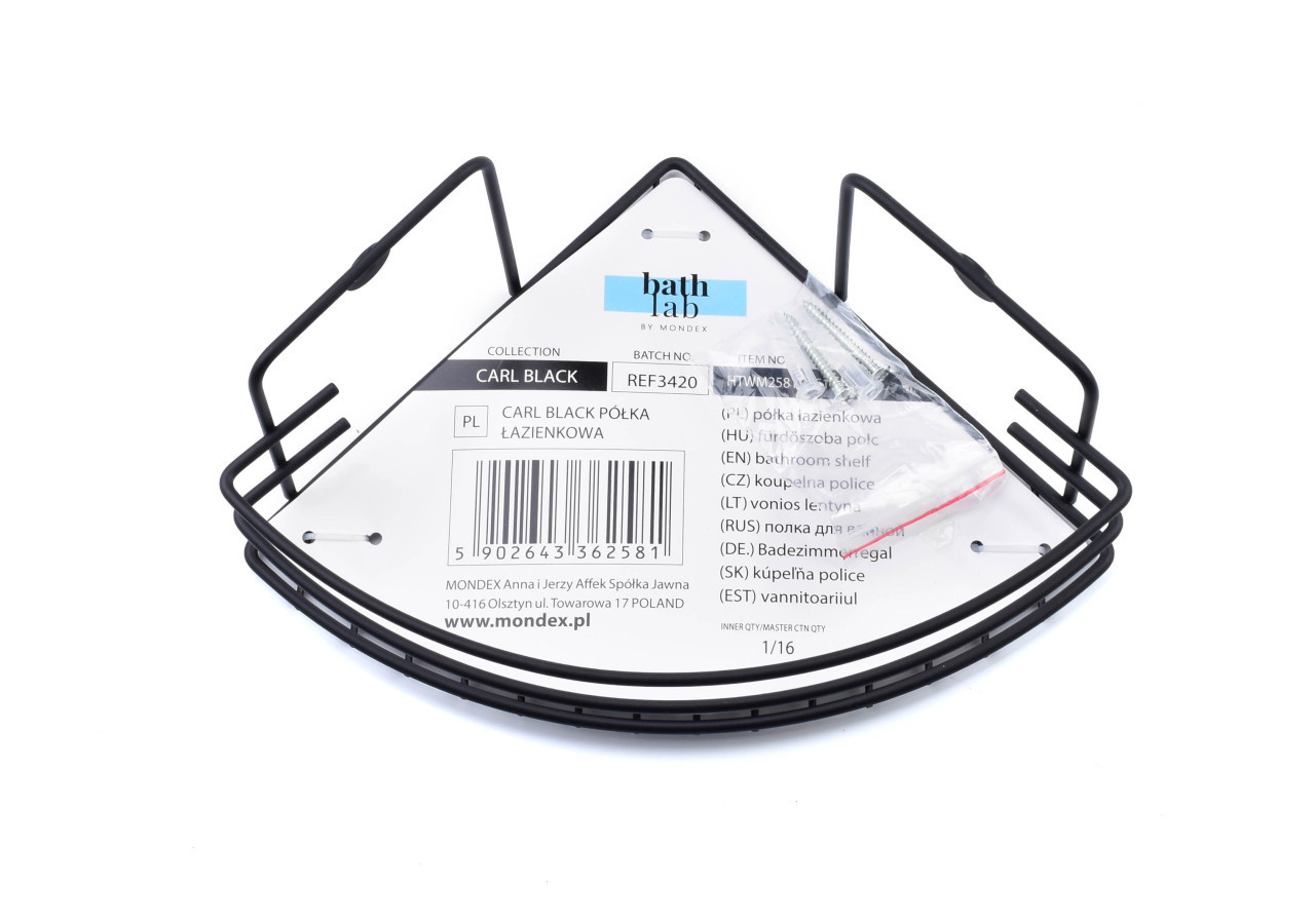 La CARL BLACK est une étagère de salle de bain fonctionnelle avec un niveau. Sa finition noire contemporaine ajoute une touche moderne à votre espace. Avec ses dimensions de 9 x 19 x 19 cm, elle est facile à installer.