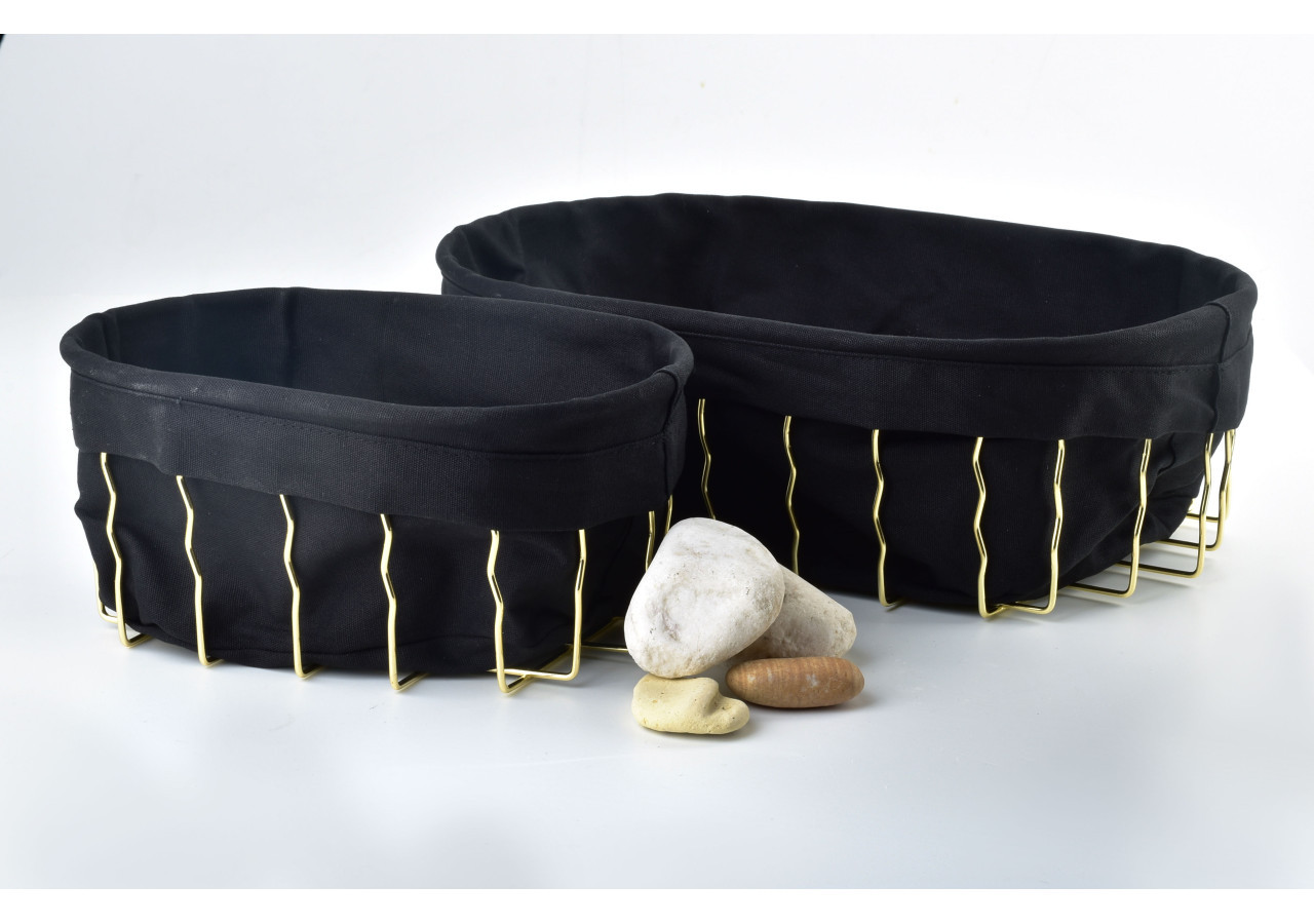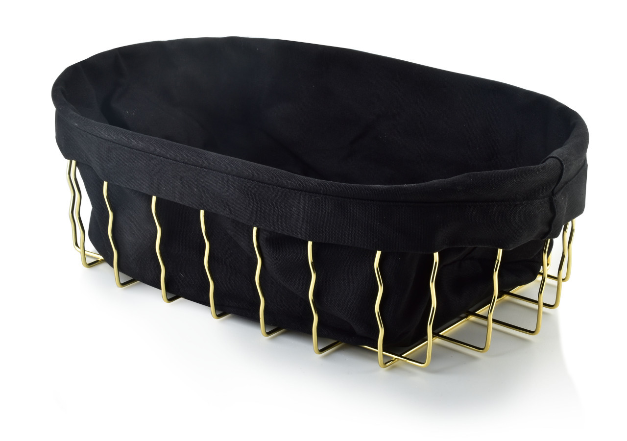 Le panier CASSIE de la marque COOKINI est un élégant panier ovale en métal doré, doublé d'un tissu noir. Parfait pour servir du pain ou organiser des petits objets, il allie fonctionnalité et esthétique. Avec des dimensions de 32cm de long, 22cm de large et 10cm de haut, ce panier est un accessoire de cuisine chic et pratique pour votre maison.