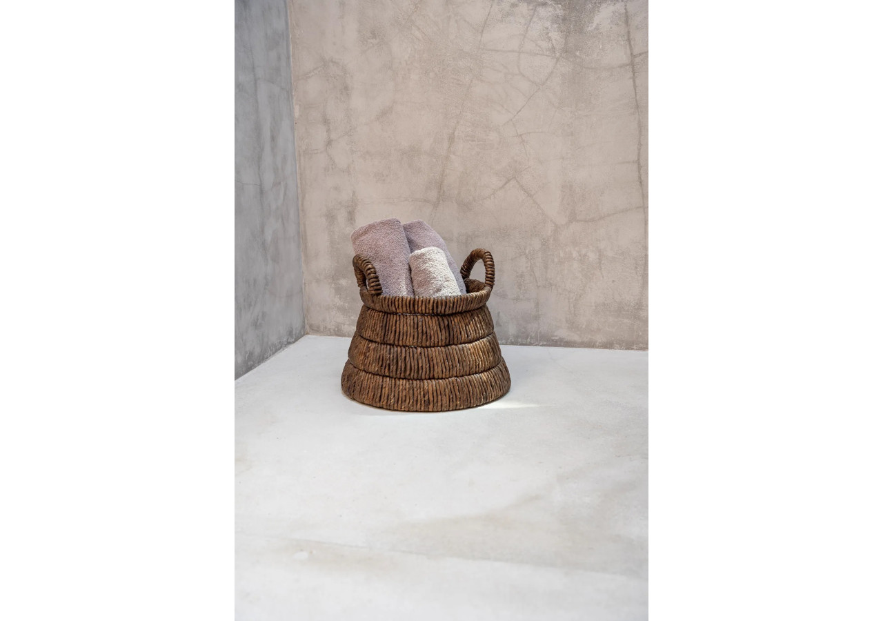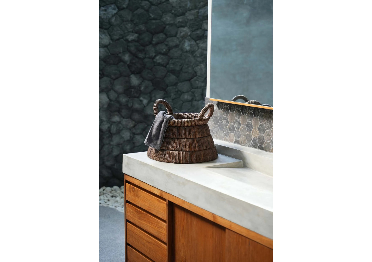 Le panier Chisomo est une œuvre d'art tissée à la main à partir de feuilles de bananier séchées. Sa couleur marron foncé apporte une touche naturelle à tout intérieur, qu'il soit classique ou moderne. Sa forme triangulaire attire immédiatement le regard, et ses poignées le rendent facilement manipulable. Idéal pour le salon, la salle de bain ou même comme porte-revues.
