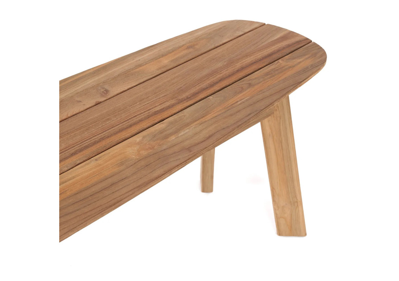 Ce magnifique banc en teck recyclé écologique est une véritable pièce maîtresse ! Le Tutuala se distingue par ses formes arrondies et ses pieds atypiques, créant un meuble unique. Conçu pour un usage extérieur, il est également pratique. Déplacez-le aisément de votre jardin à votre hall ou à votre salon selon vos envies !