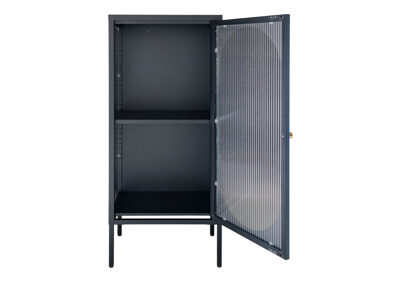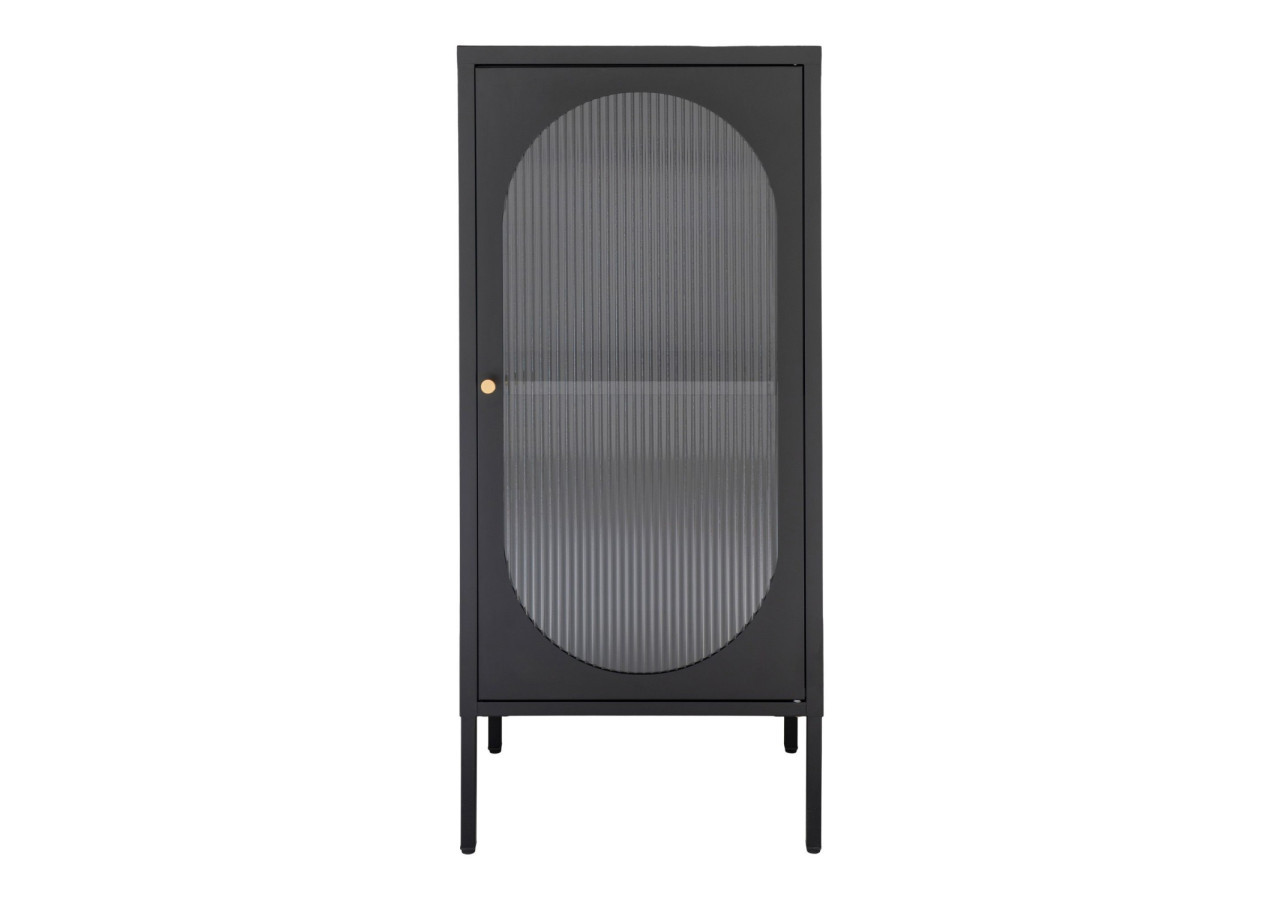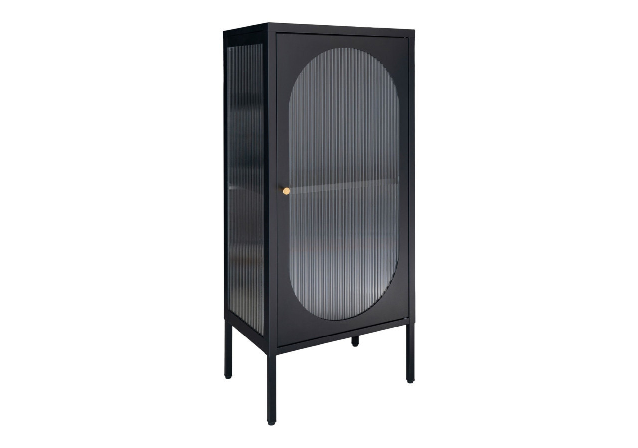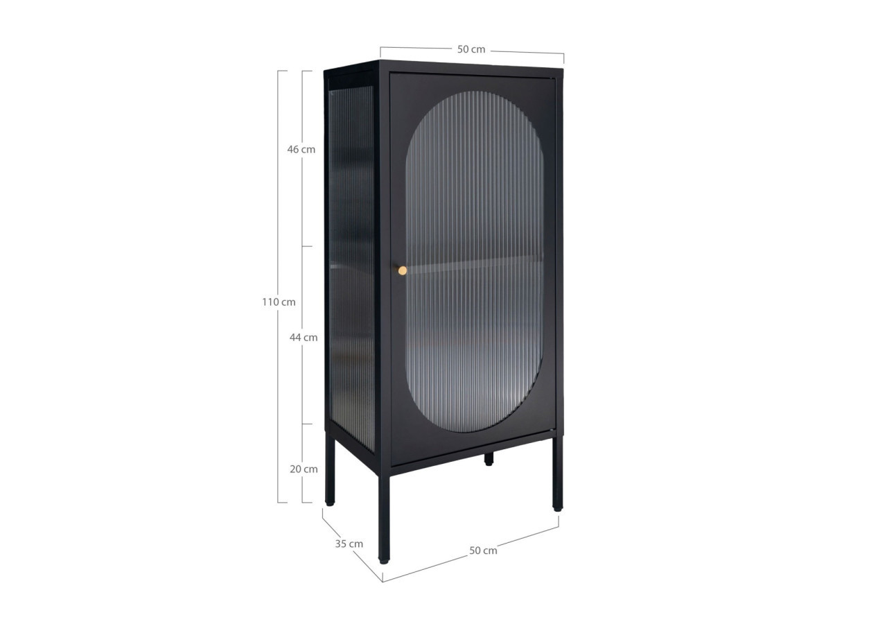 Découvrez la vitrine ADELAIDE, un meuble élégant en noir, orné d'une porte en verre ondulé qui ajoute une touche de sophistication à votre intérieur. Avec des dimensions de 50 x 35 x 110 cm, elle est parfaite pour exposer vos objets préférés tout en optimisant l'espace de votre pièce.