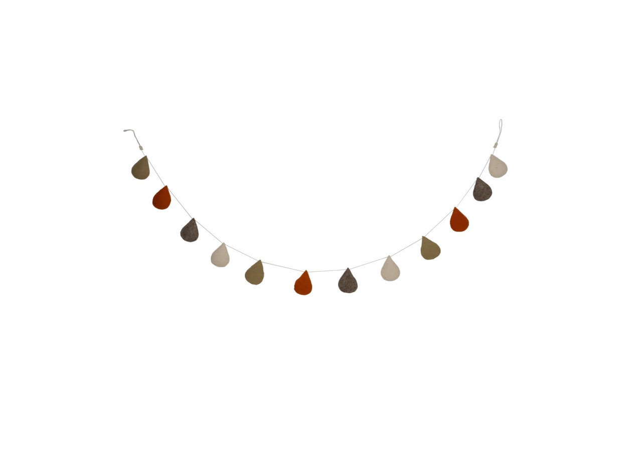 Embellissez votre intérieur avec cette guirlande de cônes colorés. Mesurant 180 cm, elle est composée de 12 cônes faits main en feutre, parfaits pour une décoration ludique et originale.