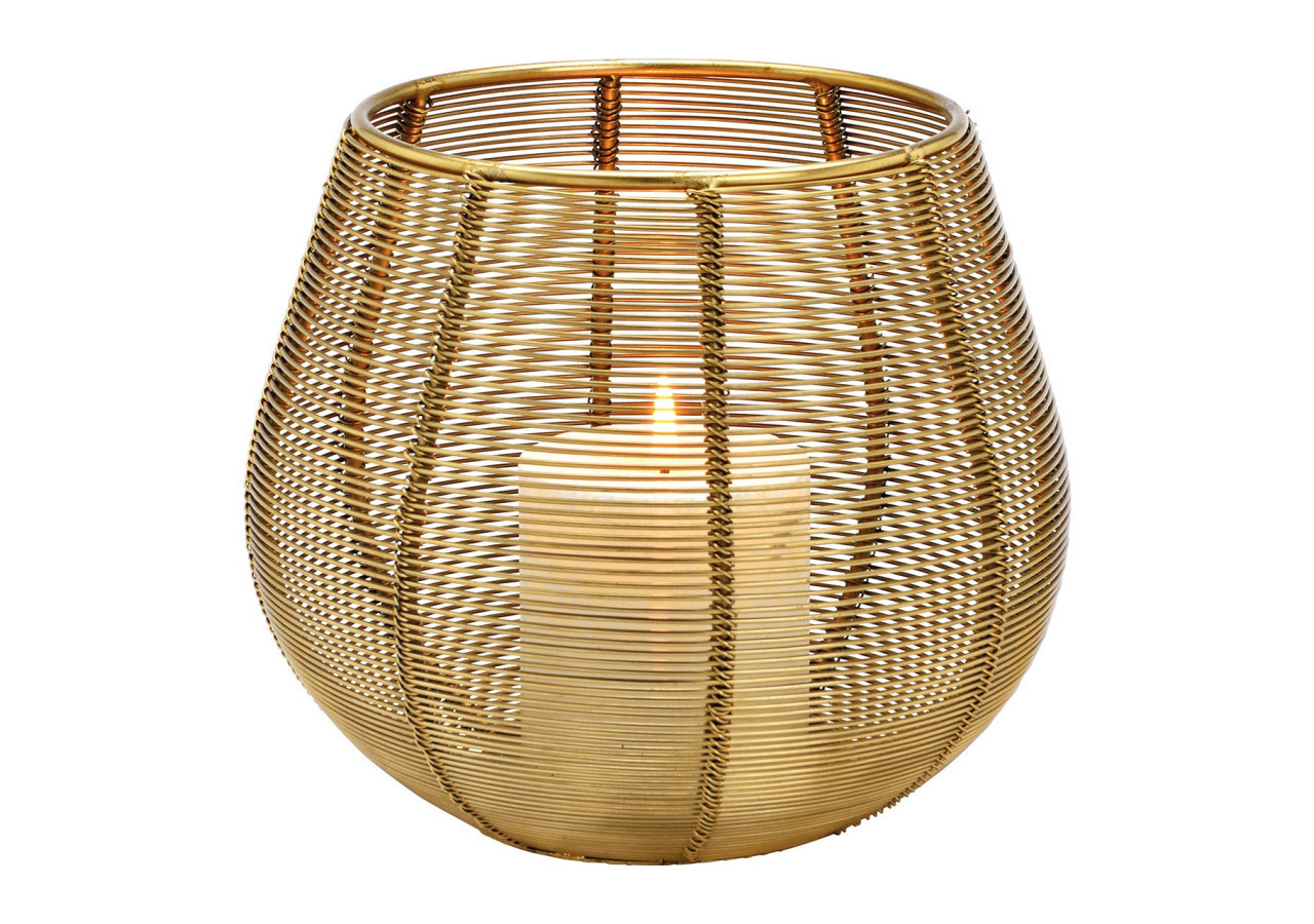 Ajoutez une touche de glamour à votre décoration avec cette lanterne en métal dorée. Son éclat et son design raffiné rehausseront n'importe quel espace. Dimensions : 16x16x16cm.