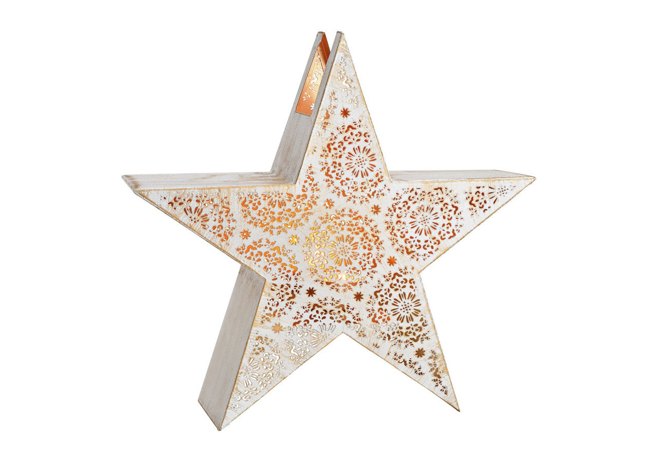 Embellissez votre décoration avec notre lanterne étoilée en métal, alliant blanc et or. Avec des dimensions de 36x31x10cm, elle est parfaite pour ajouter une touche élégante à votre intérieur.