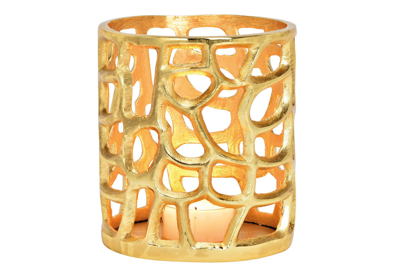 Ajoutez une touche chic à votre décoration avec cette lanterne en métal doré. Sa taille compacte et son design élégant en font un accessoire parfait pour n'importe quel espace.