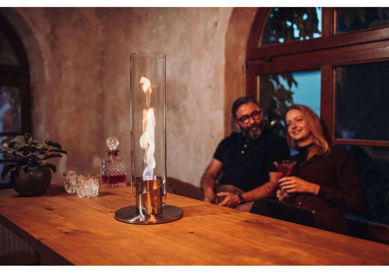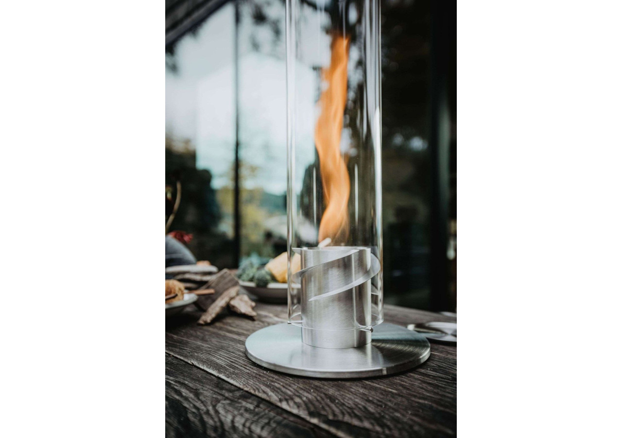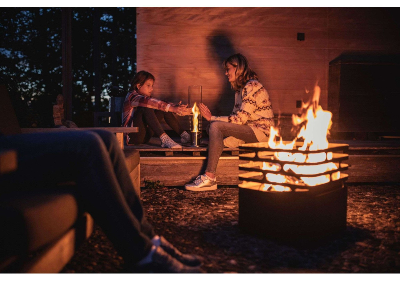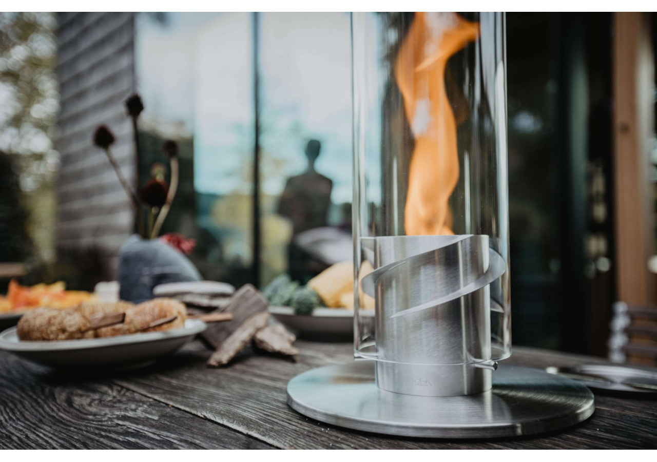 La lanterne Spin de HÄFATS est bien plus qu'un simple accessoire : c'est une source de chaleur et d’ambiance pour vos soirées en extérieur. Grâce à sa technologie de flamme tournante et son design en inox et verre borosilicaté, elle crée une atmosphère chaleureuse sur votre balcon ou terrasse.