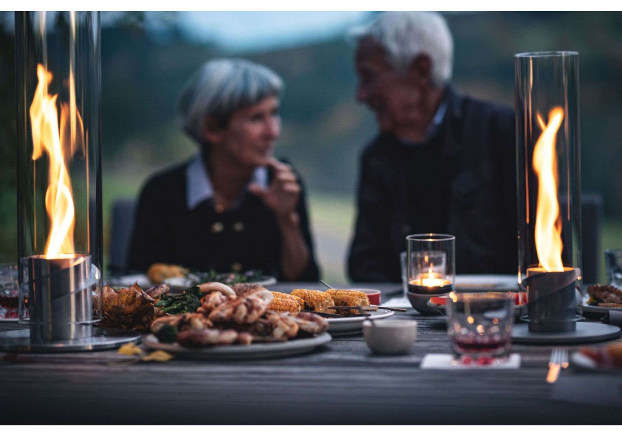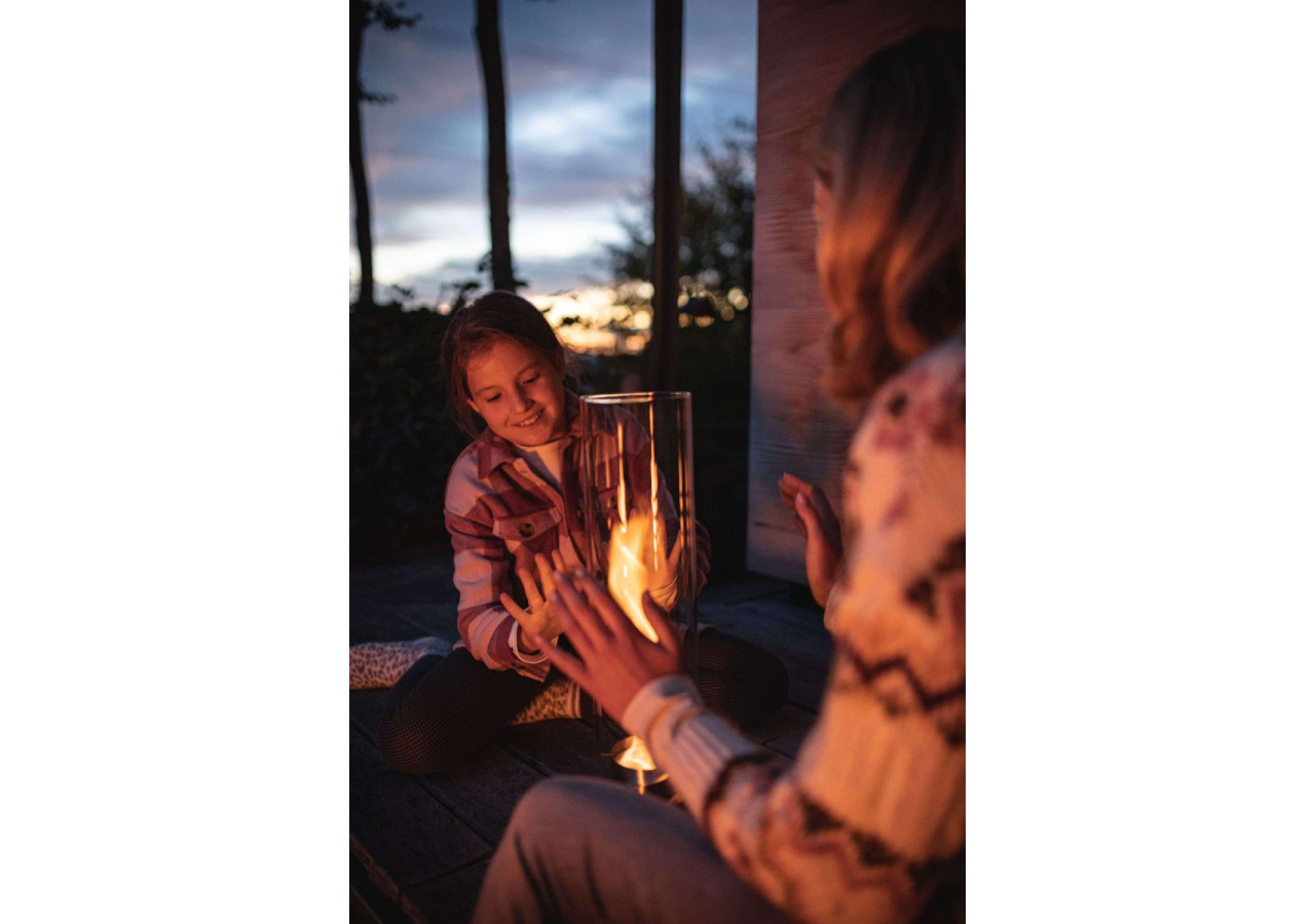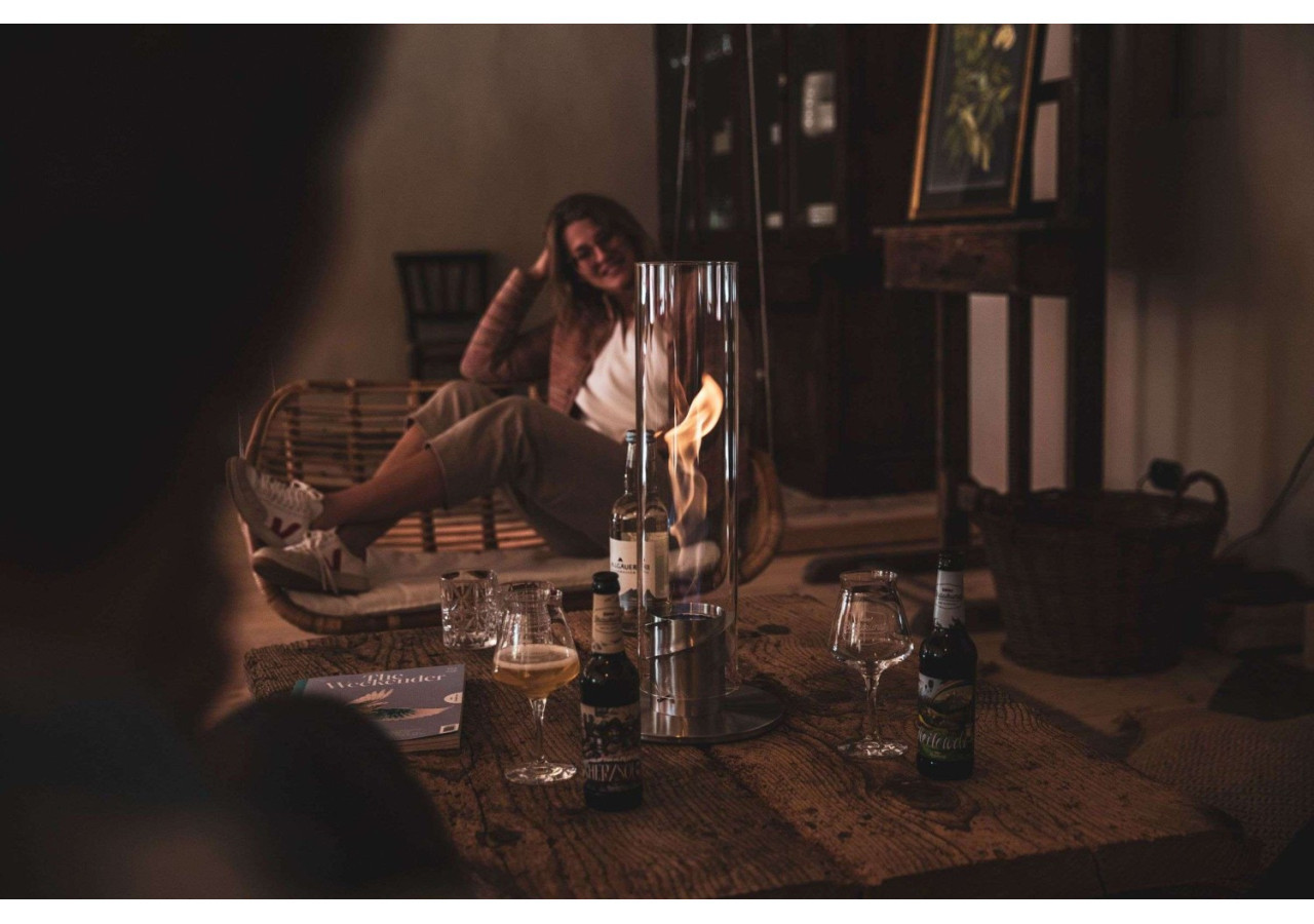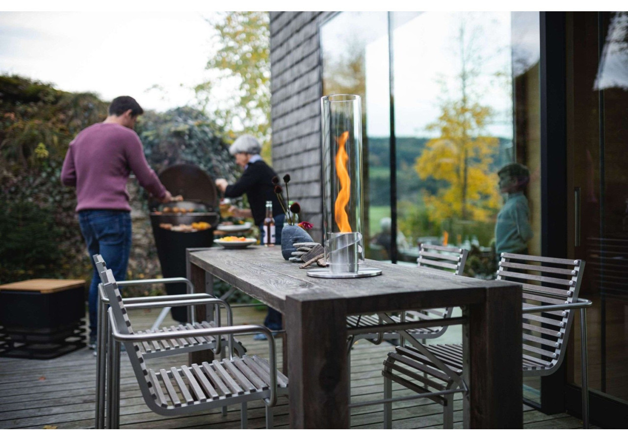 La lanterne Spin de HÄFATS est bien plus qu'un simple accessoire : c'est une source de chaleur et d’ambiance pour vos soirées en extérieur. Grâce à sa technologie de flamme tournante et son design en inox et verre borosilicaté, elle crée une atmosphère chaleureuse sur votre balcon ou terrasse.
