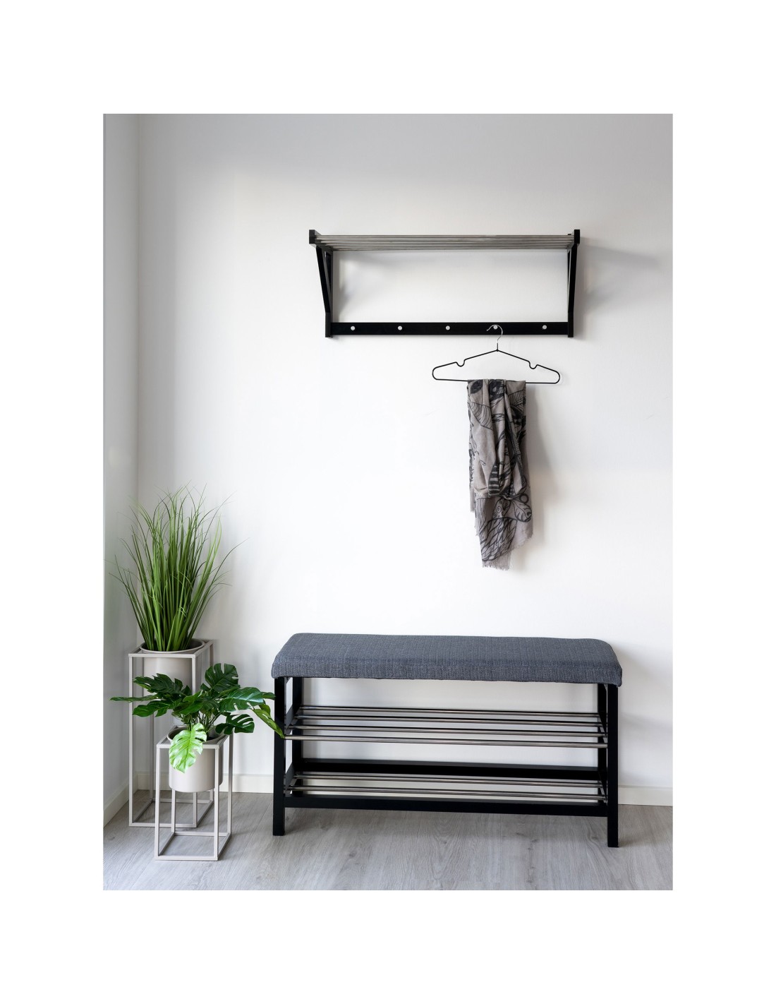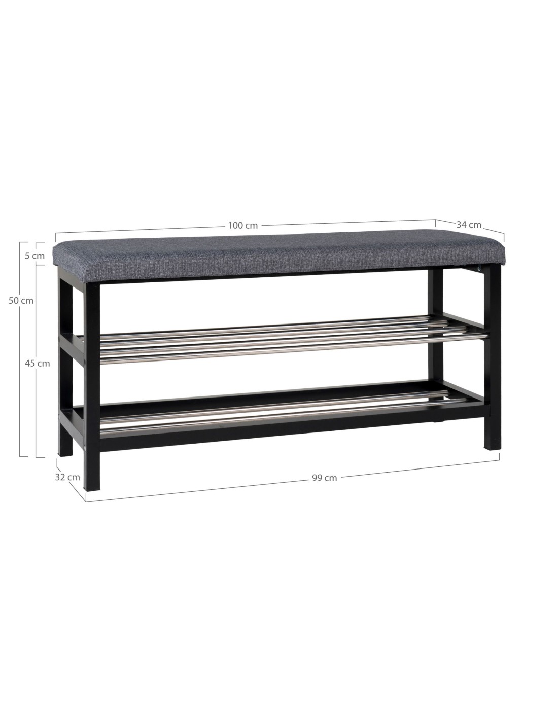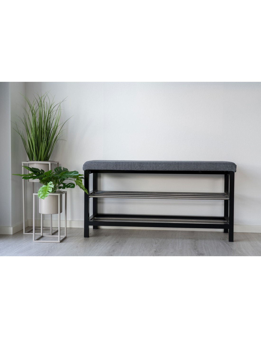 Découvrez le Banc PADOVA, alliant élégance et fonctionnalité. Ce banc en gris avec des pieds noirs mesure 100x34x50 cm.