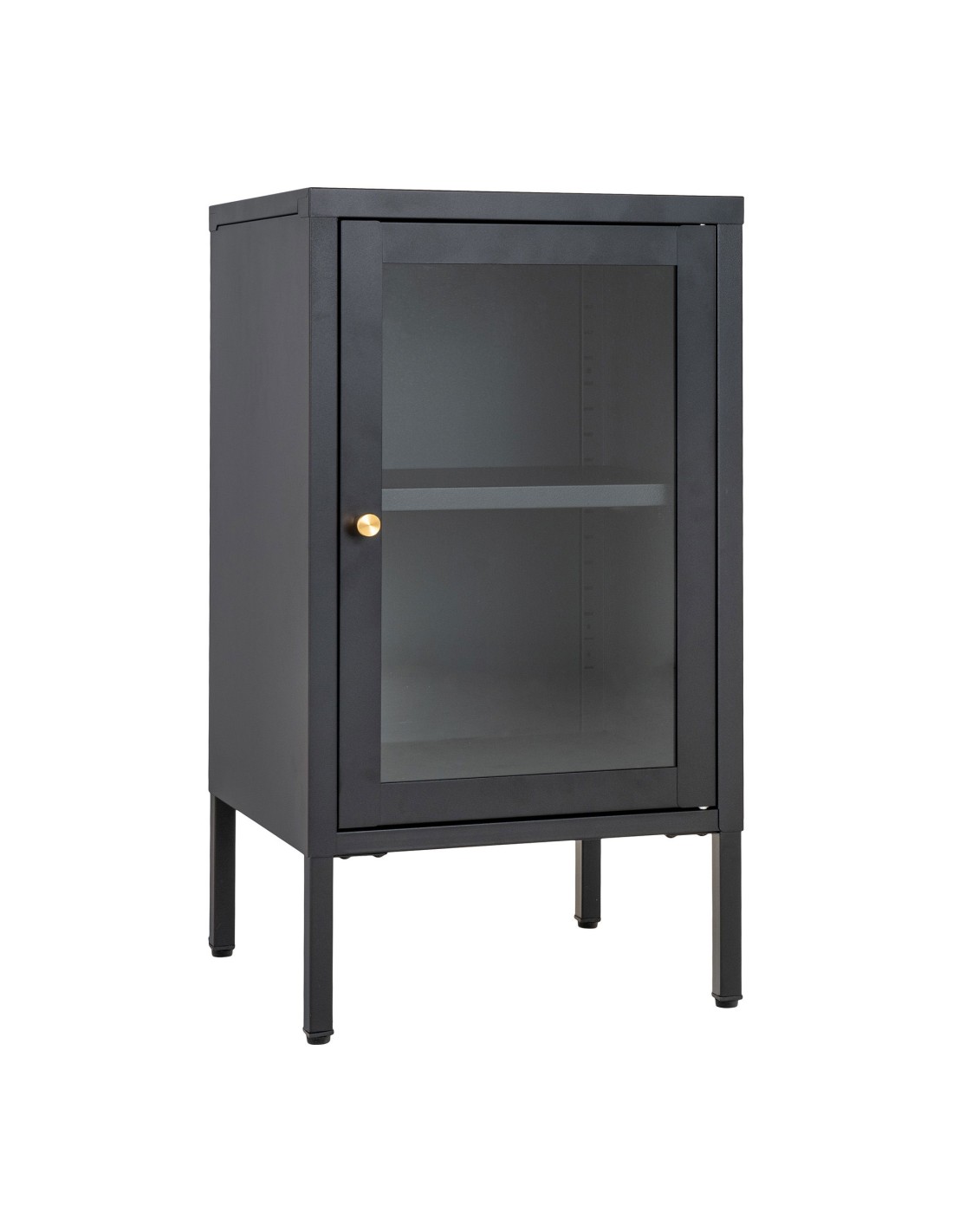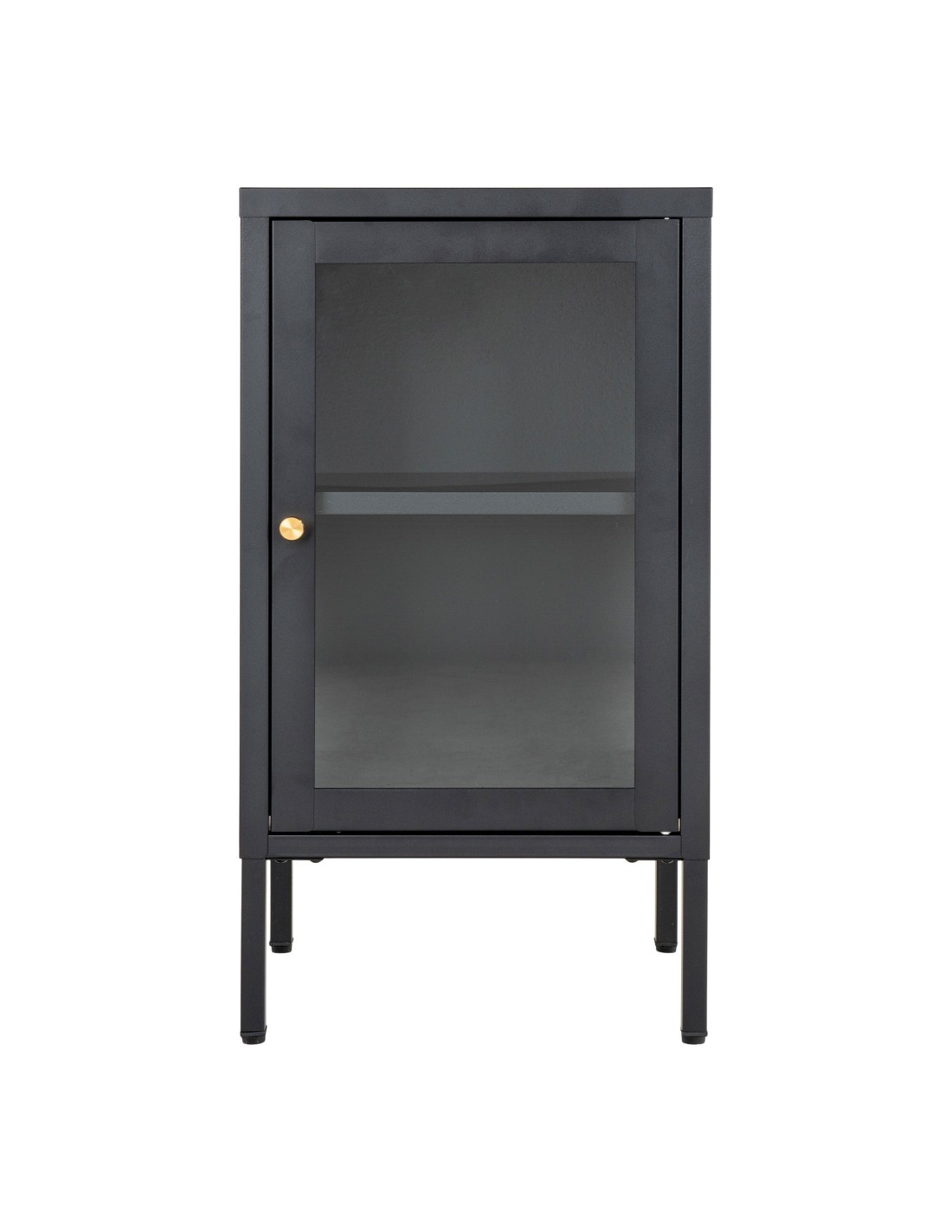 Le cabinet Dalby en noir avec porte en verre est une pièce maîtresse pour toute pièce. Sa conception élégante et moderne permet d'exposer vos objets avec style tout en offrant un espace de rangement fonctionnel.
