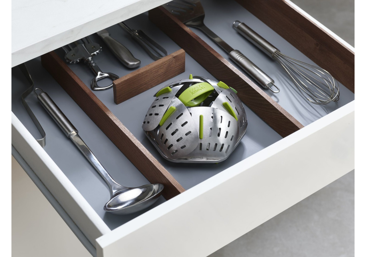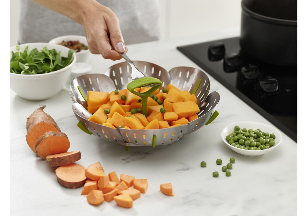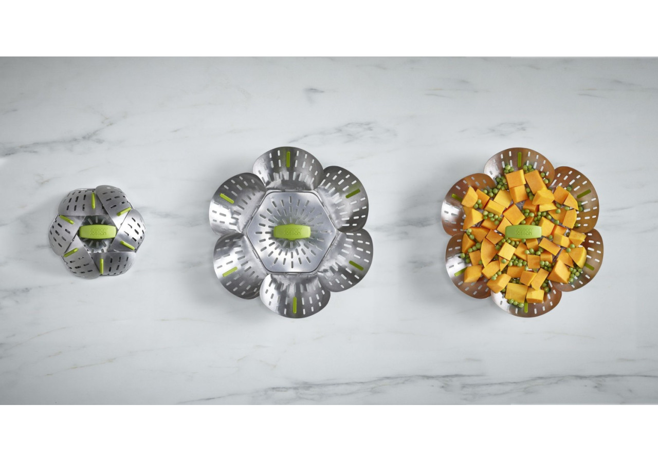 Optimisez votre cuisine avec le panier vapeur pliable de Joseph Joseph. Avec un diamètre de 16 cm, il s'intègre dans diverses casseroles tout en préservant la couleur, le goût et les nutriments de vos aliments. Facile à utiliser et à nettoyer au lave-vaisselle, c'est un incontournable pour les amateurs de cuisine saine.