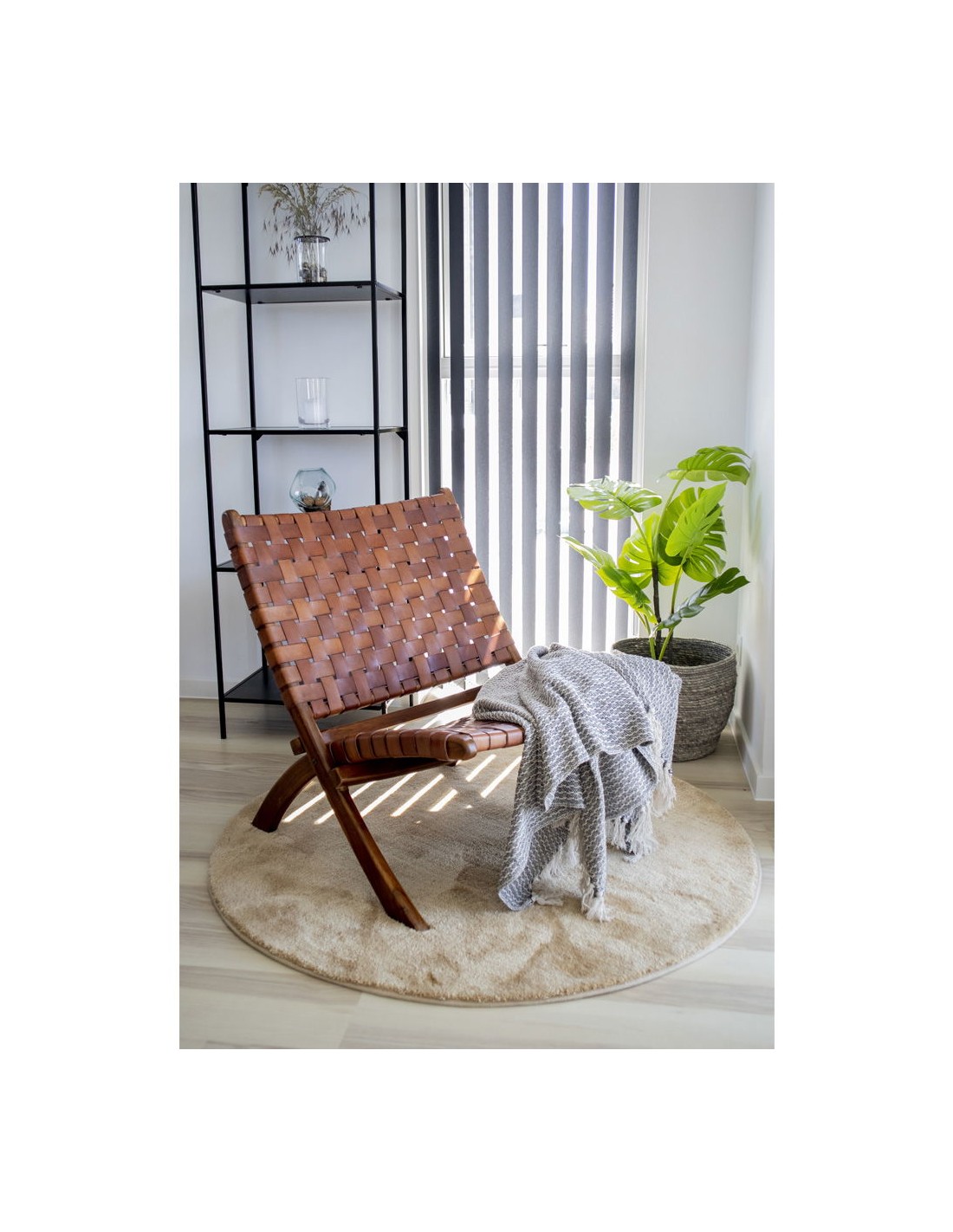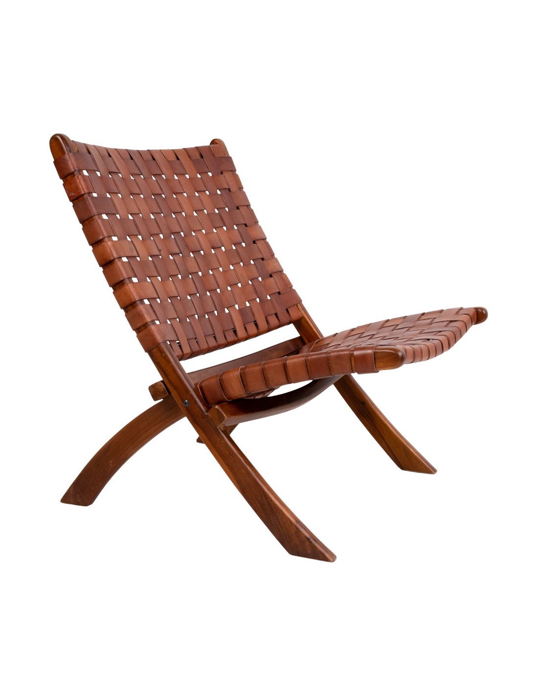 La Chaise Pliante PERUGIA en cuir marron est à la fois pratique et élégante. Avec ses pieds en bois de teck, elle allie durabilité et style, parfaite pour les espaces extérieurs ou pour les invités à la maison.
