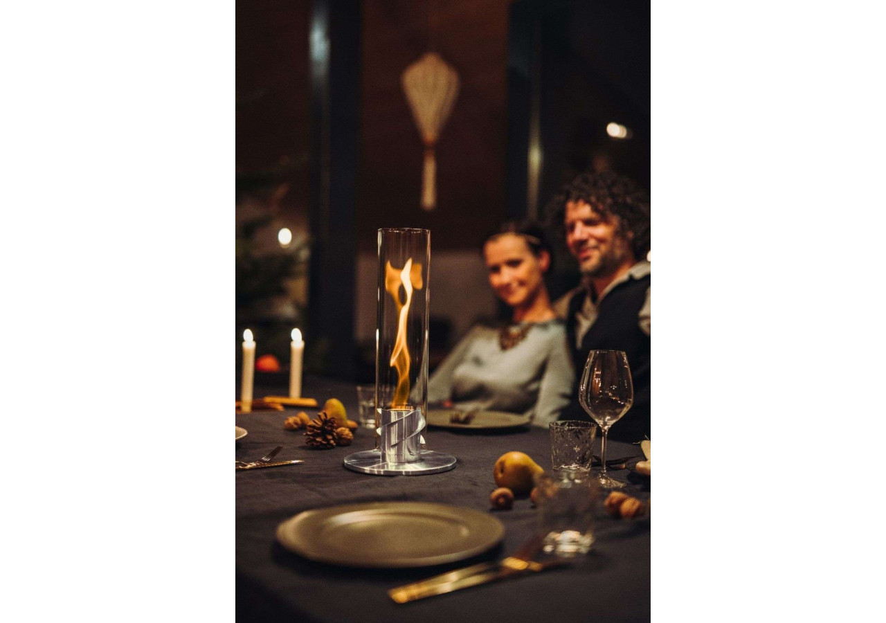 La Lantern Spin 90 de Hafa transforme votre espace extérieur avec son design élégant. Elle combine lanterne, feu de table et lampe de jardin. Fabriquée en acier inoxydable et verre borosilicate, elle crée une ambiance chaleureuse grâce à sa flamme bioéthanol. Facile à utiliser et à éteindre avec le couvercle inclus, elle est parfaite pour vos soirées d'été.