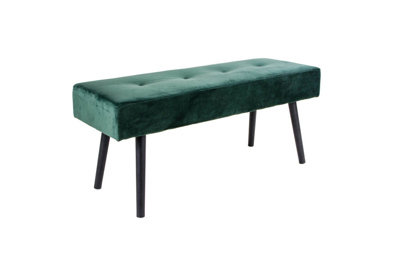 Le Banc SKIBY en velours vert foncé est une pièce maîtresse pour votre salon. Avec des dimensions de 100x35x44 cm et ses pieds noirs, il combine confort et style, parfait pour ajouter une touche de luxe à votre décoration.