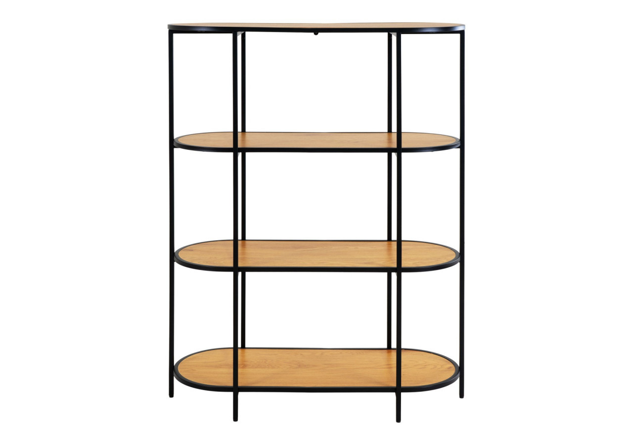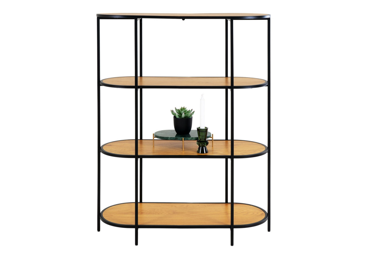 La Étagère Vita au design ovale, avec son cadre noir et quatre étagères en aspect chêne, est parfaite pour ajouter une touche de sophistication à votre espace. Mesurant 85 x 36 x 111 cm, elle combine fonctionnalité et esthétique pour un intérieur accueillant.